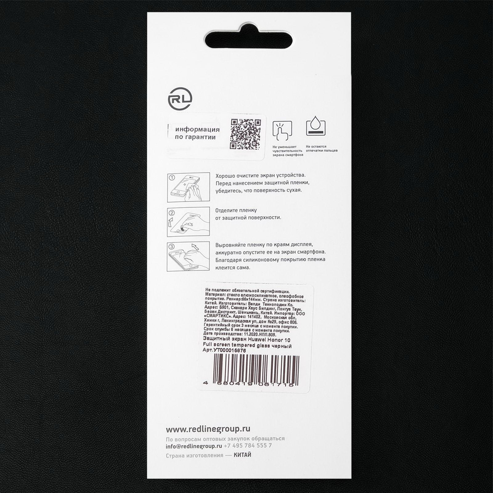 Защитное стекло для Huawei Honor 10, Full Screen, полный клей, чёрное, Red Line, Китай