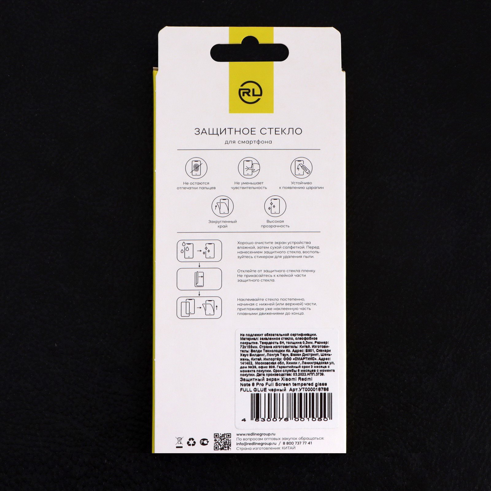 Защитное стекло для Xiaomi Redmi Note 8 Pro, Full Screen, полный клей, чёрное, Red Line, Китай