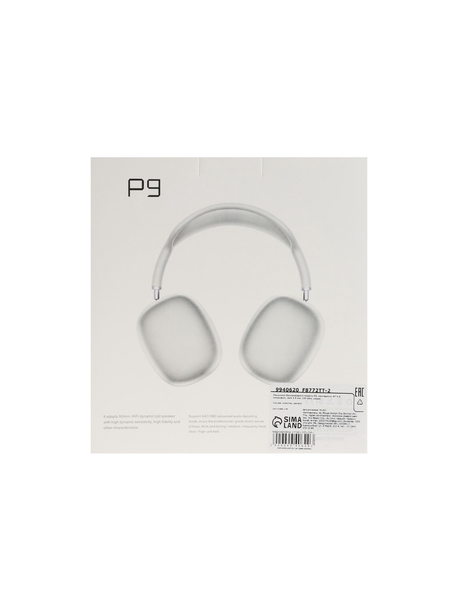 Наушники беспроводные, накладные, P9, Bluetooth 5.0, с микрофоном, Jack 3.5 мм 150 мАч, серые, 19x22x4 см., Китай