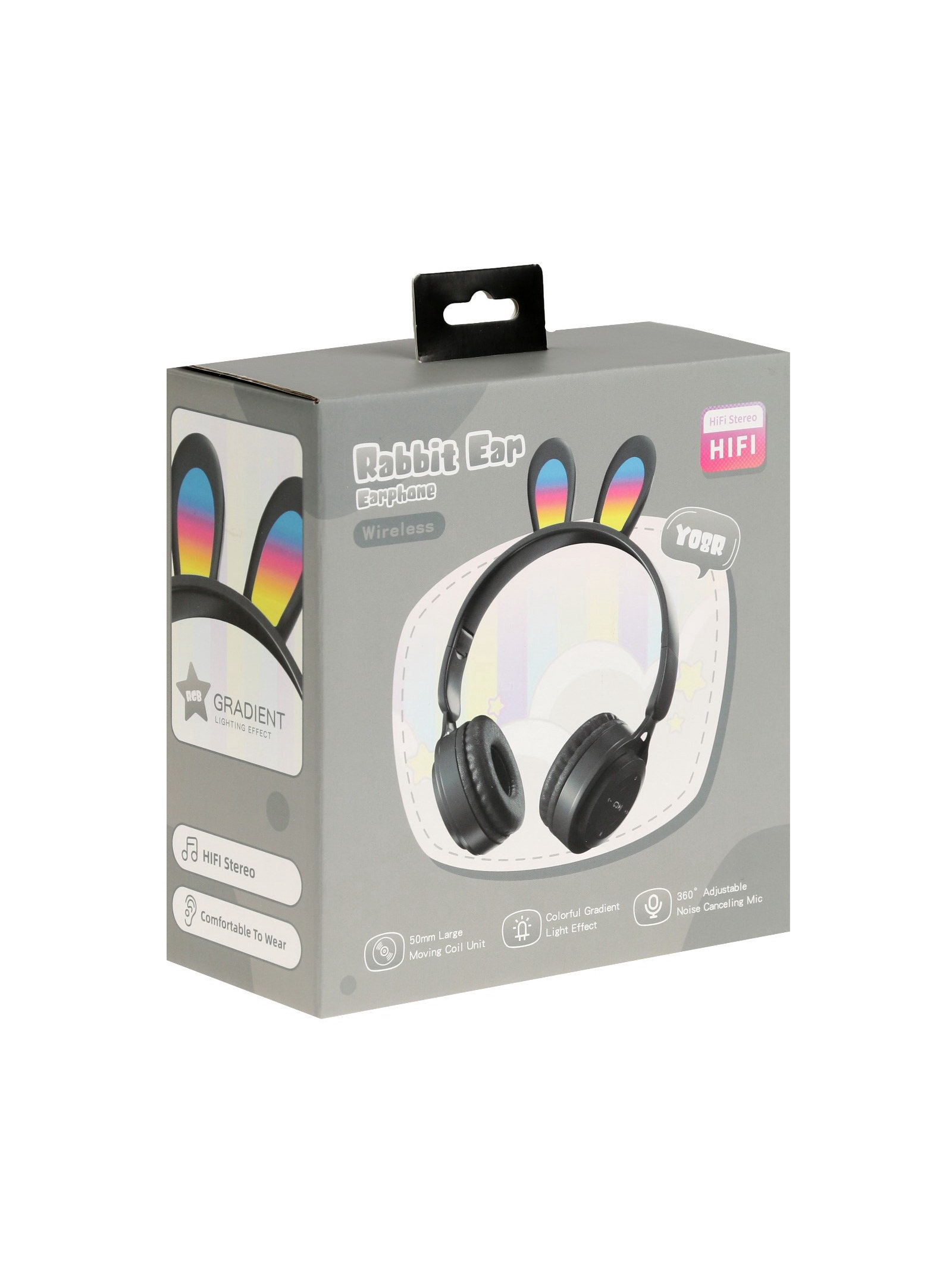 Наушники детские, беспроводные, накладные, с ушками зайца, Y08R, Bluetooth 5.1, с микрофоном, с подсветкой, 400 мАч, чёрные, 23x18x7 см., Китай