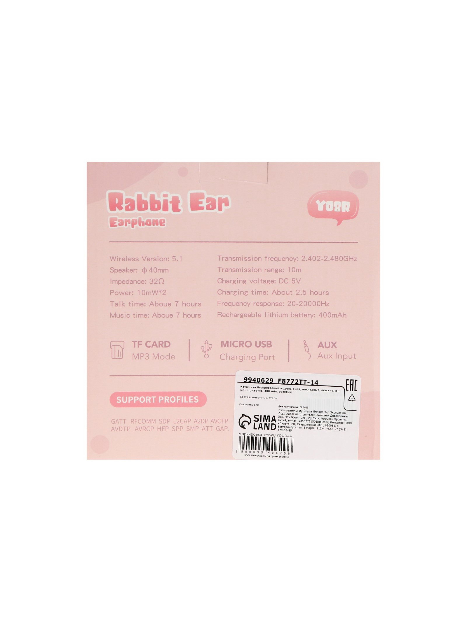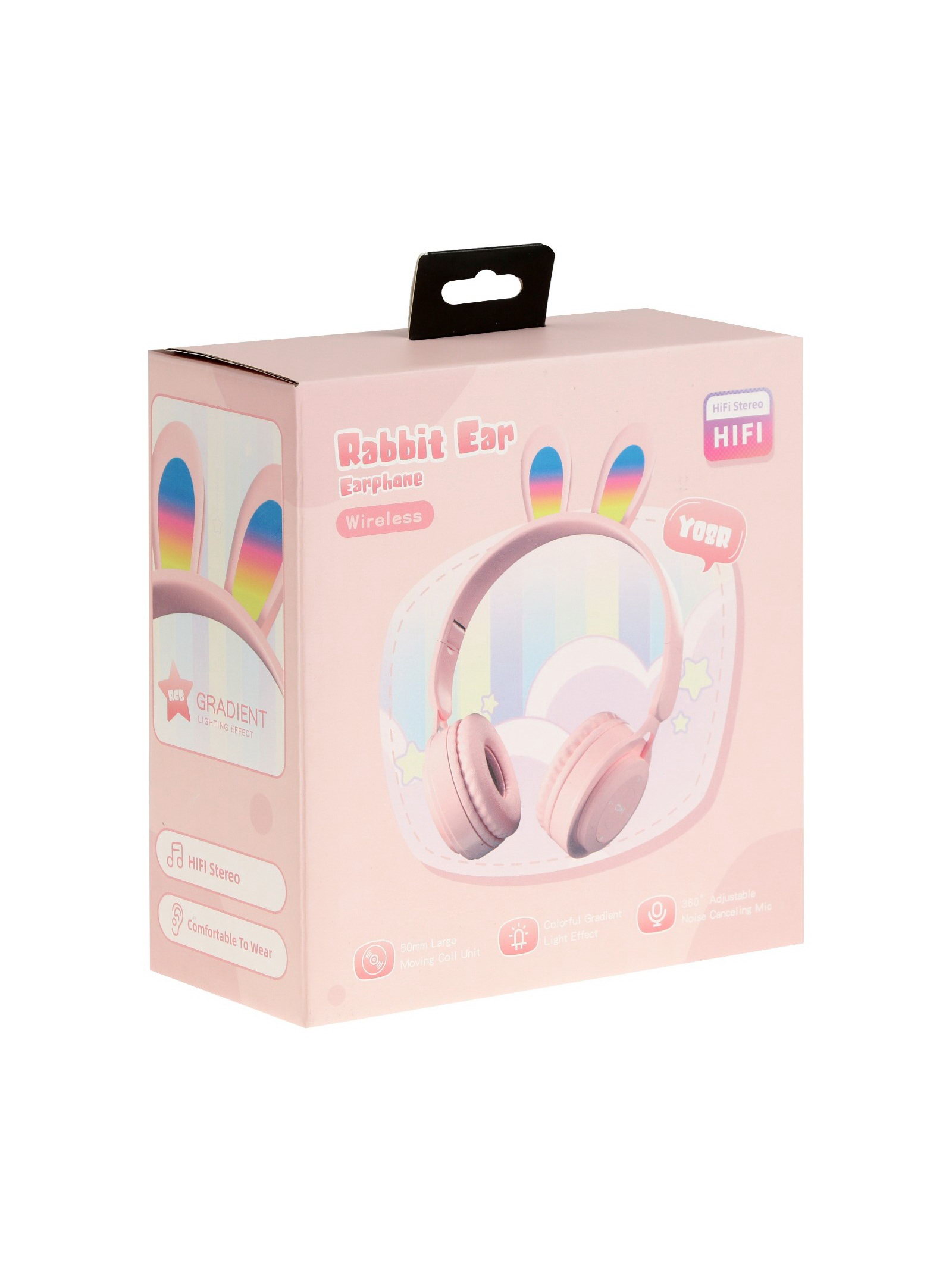 Наушники детские, беспроводные, накладные, с ушками зайца, Y08R, Bluetooth 5.1, с микрофоном, с подсветкой, 400 мАч, розовые, 23x18x7 см., Китай