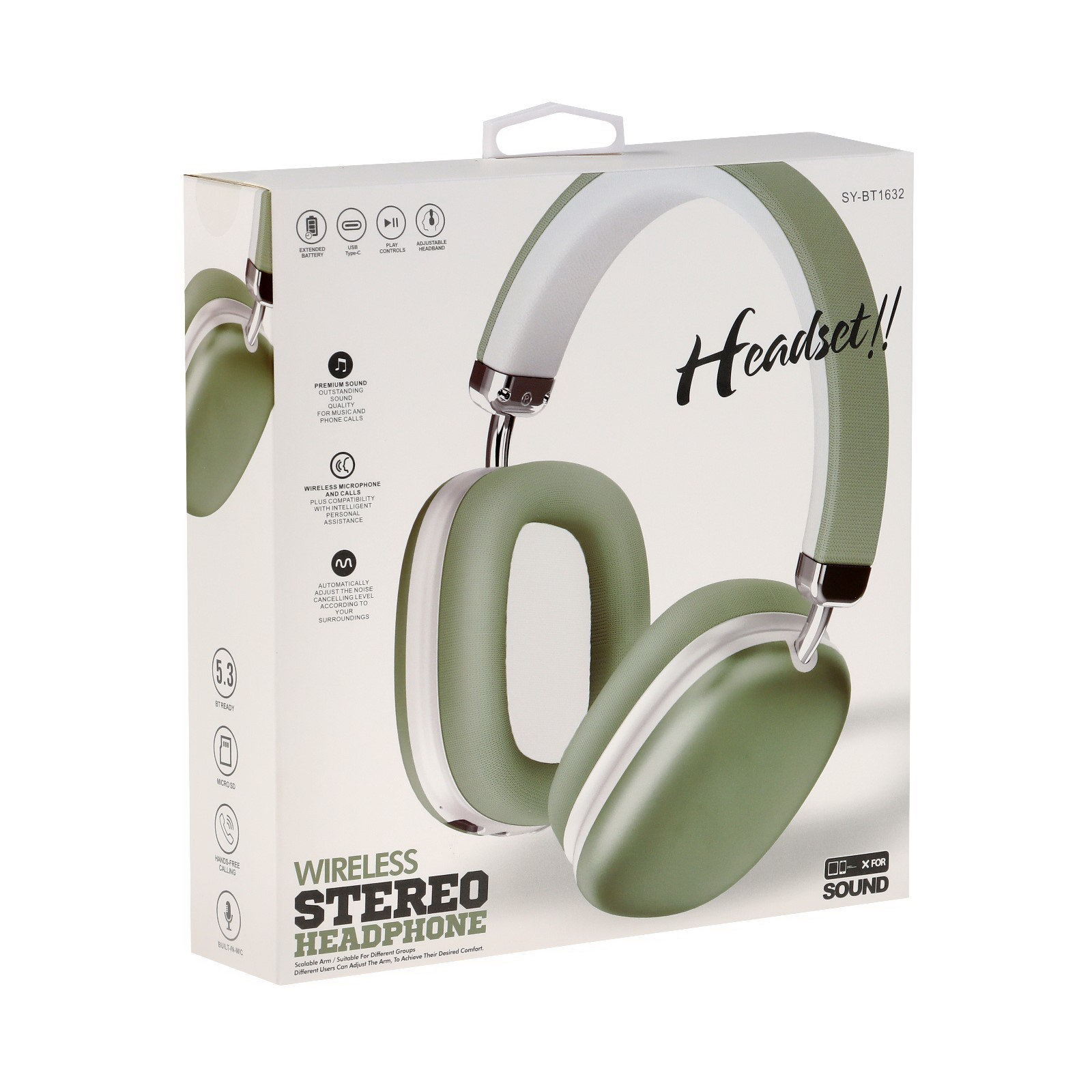 Наушники беспроводные SY-BT 1632, полноразмерные, микрофон, BT5.3, AUX, 400 мАч, зелёные, 20.5x5.1x23.5 см., Китай