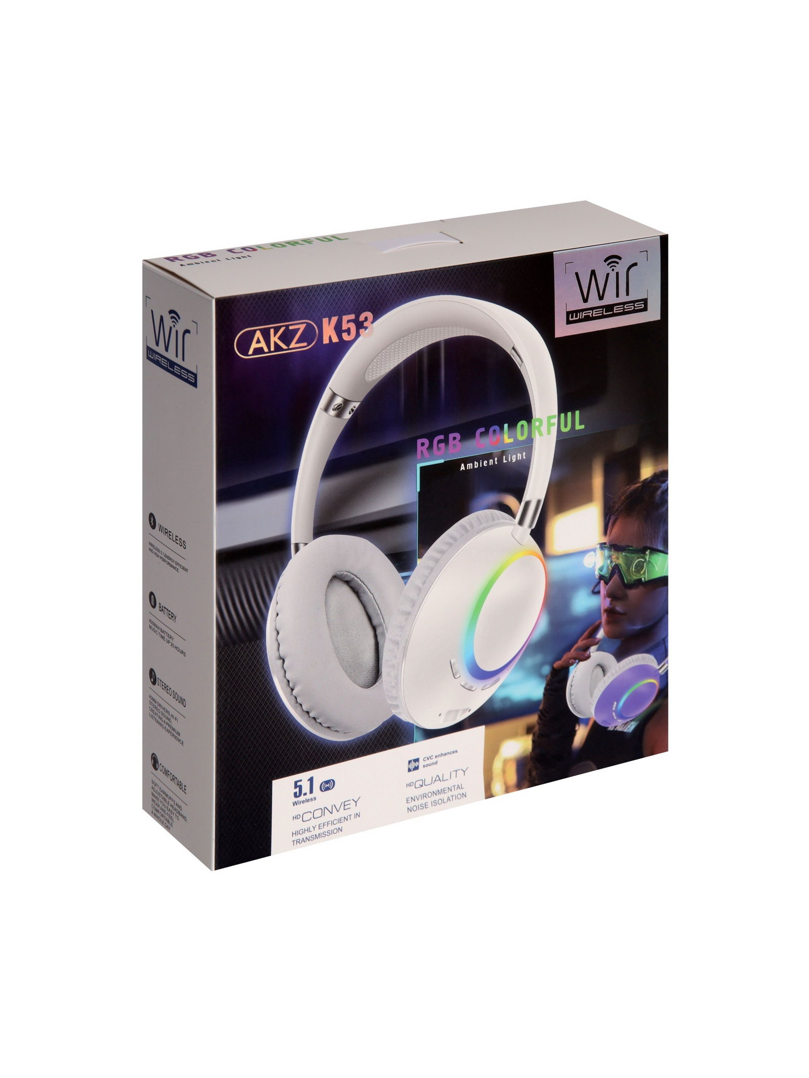 Наушники беспроводные, полноразмерные, AKZ K53, с шумоподавлением, с микрофоном, с подсветкой RGB, белые, 21x19x6 см., Китай