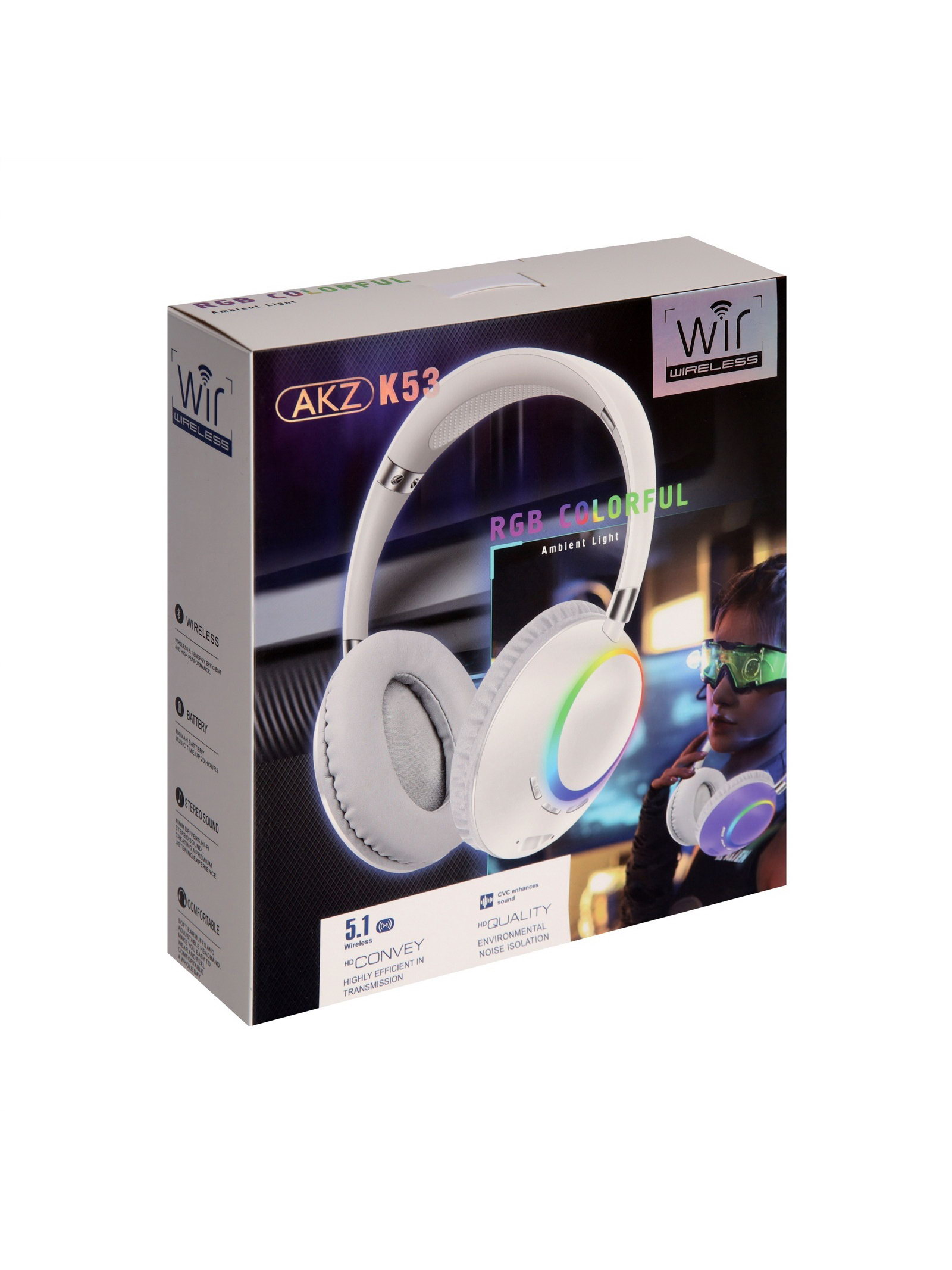 Наушники беспроводные, полноразмерные, AKZ K53, с шумоподавлением, с микрофоном, с подсветкой RGB, чёрные, 21x19x6 см., Китай