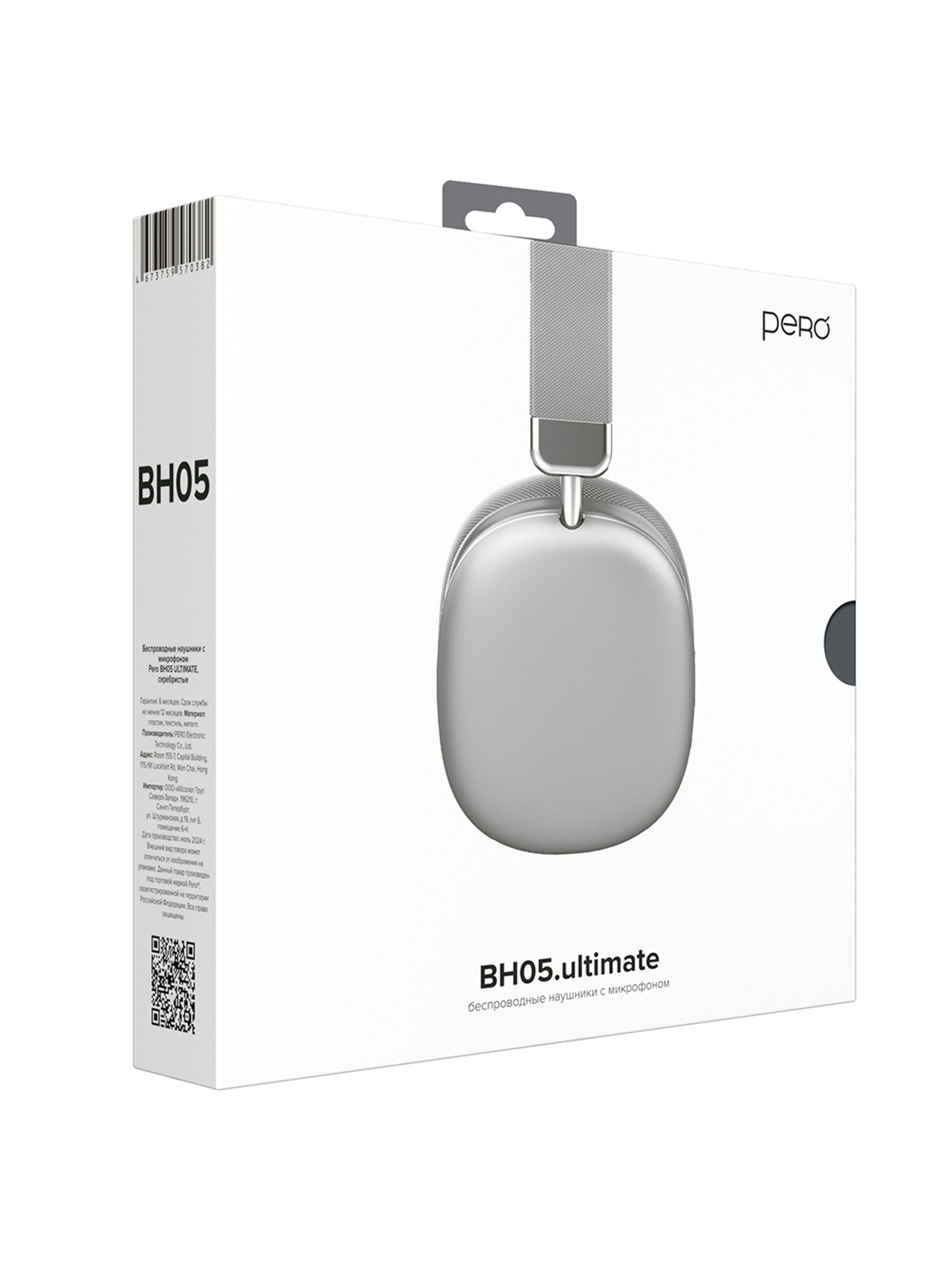 Наушники BH05 ULTIMATE, беспроводные, микрофон, 400 мАч, до 50 часов, серебристые, PERO, Китай
