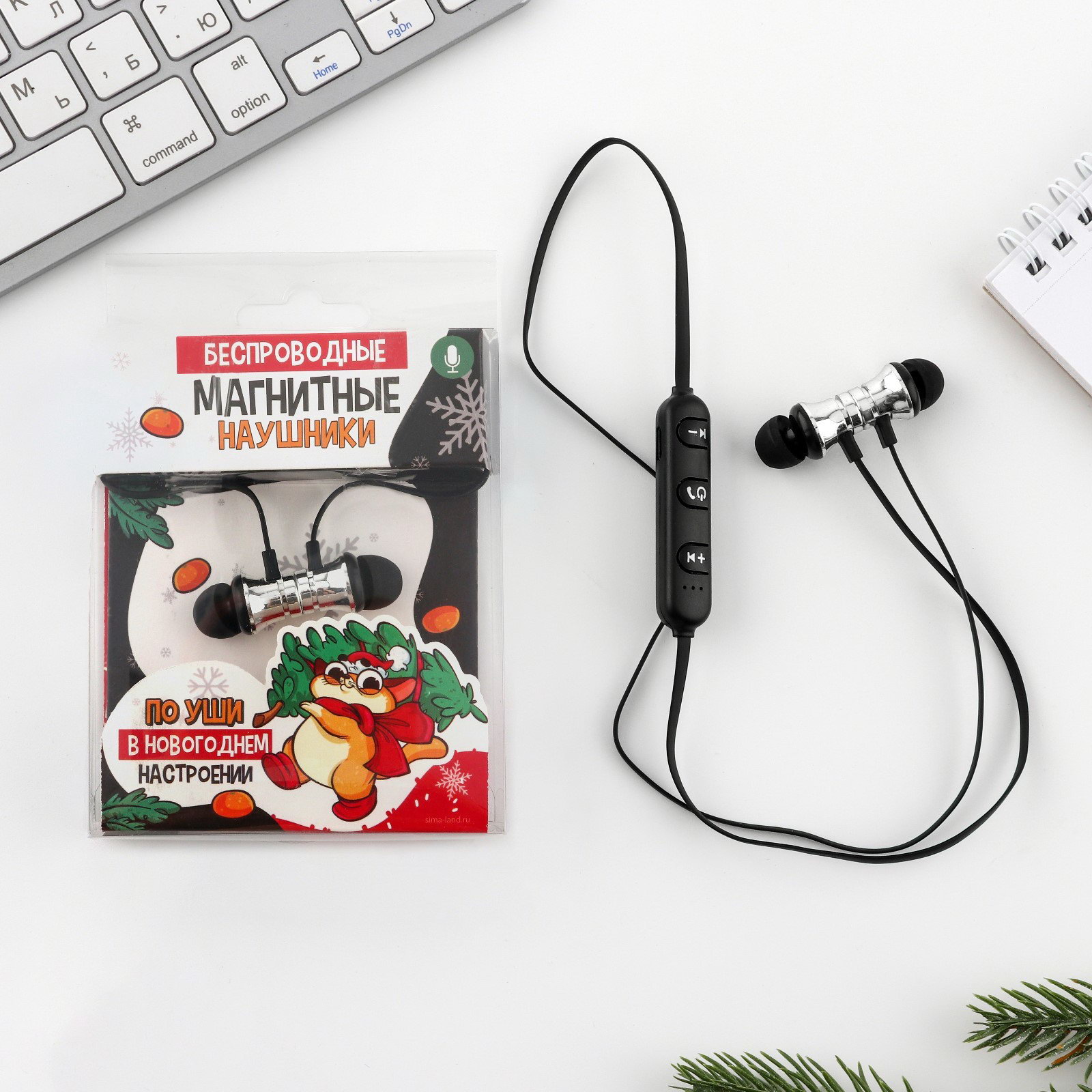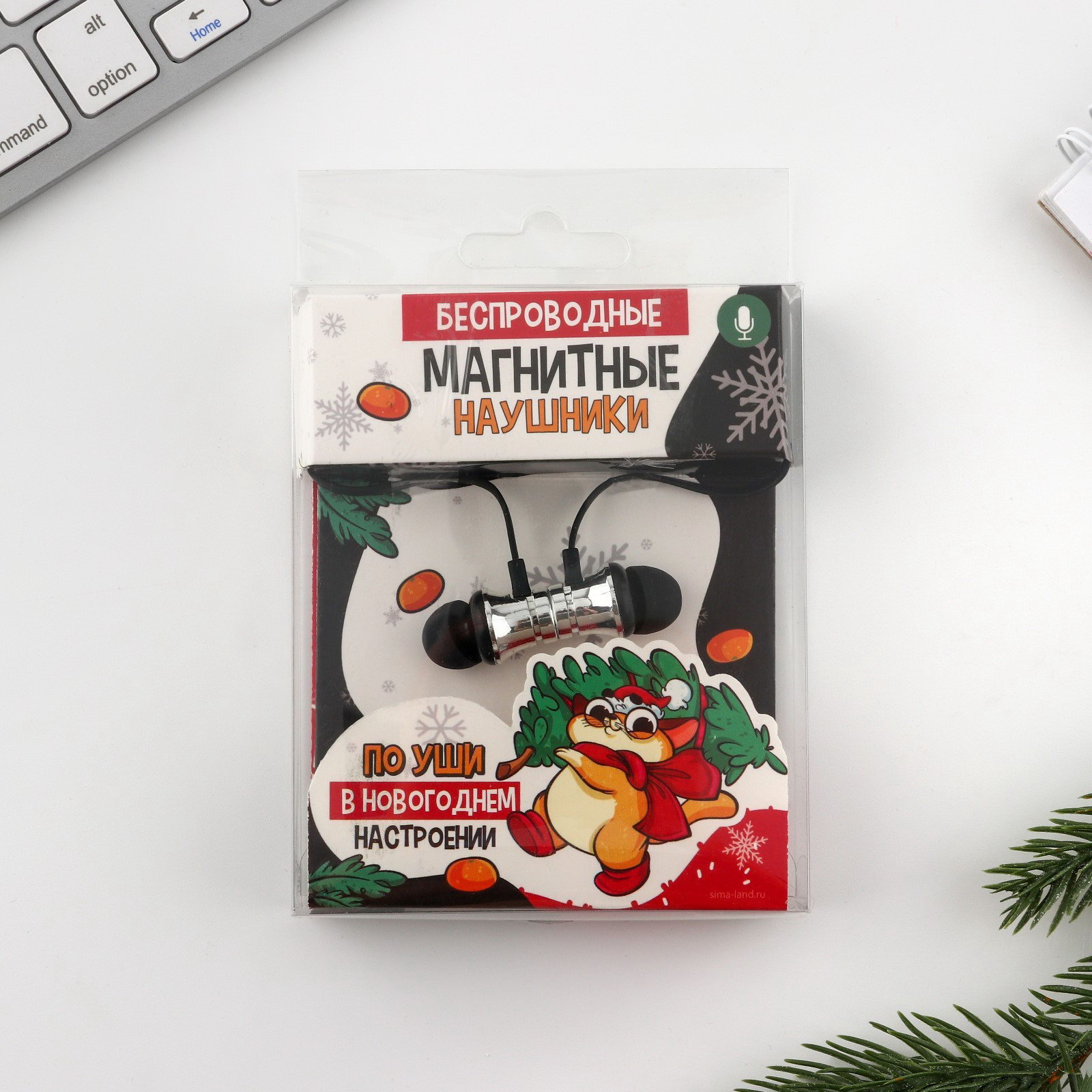Беспроводные магнитные наушники с микрофоном "Кот", длина провода 57.5 см, 9x13.5x2 см., Сима-ленд, Китай