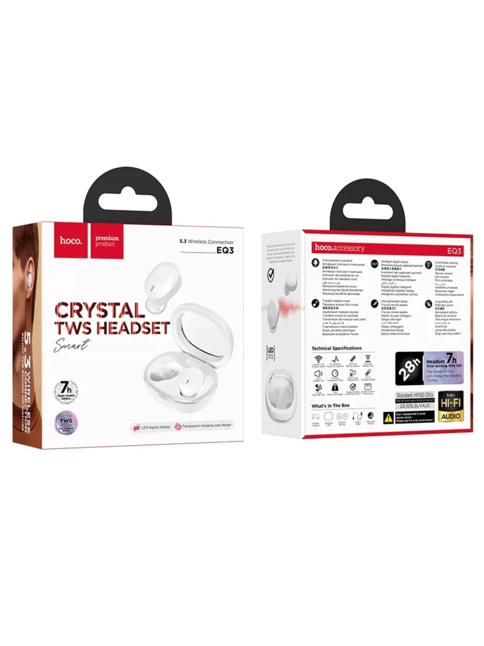 Наушники беспроводные EQ3, TWS, вакуумные, Bluetooth 5.3, 40/300 мАч, шумоподавление, белые, 1x2x1 см., Hoco, Китай