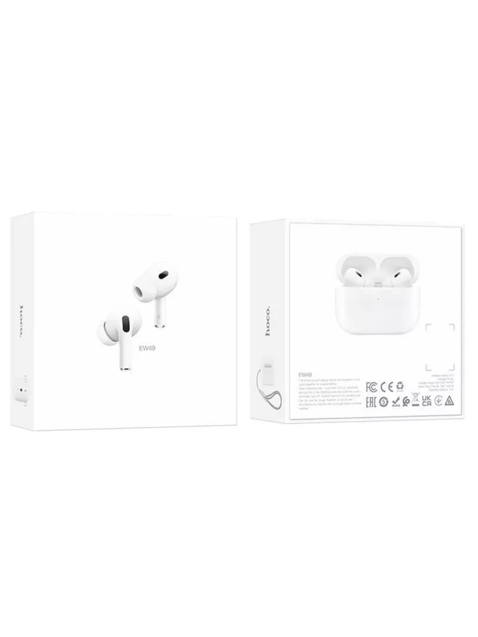 Наушники беспроводные EW49, TWS, вакуумные, Bluetooth 5.3, 30/300 мАч, шумоподавление, с беспроводной зарядкой, белые, 1x2x1 см., Hoco, Китай
