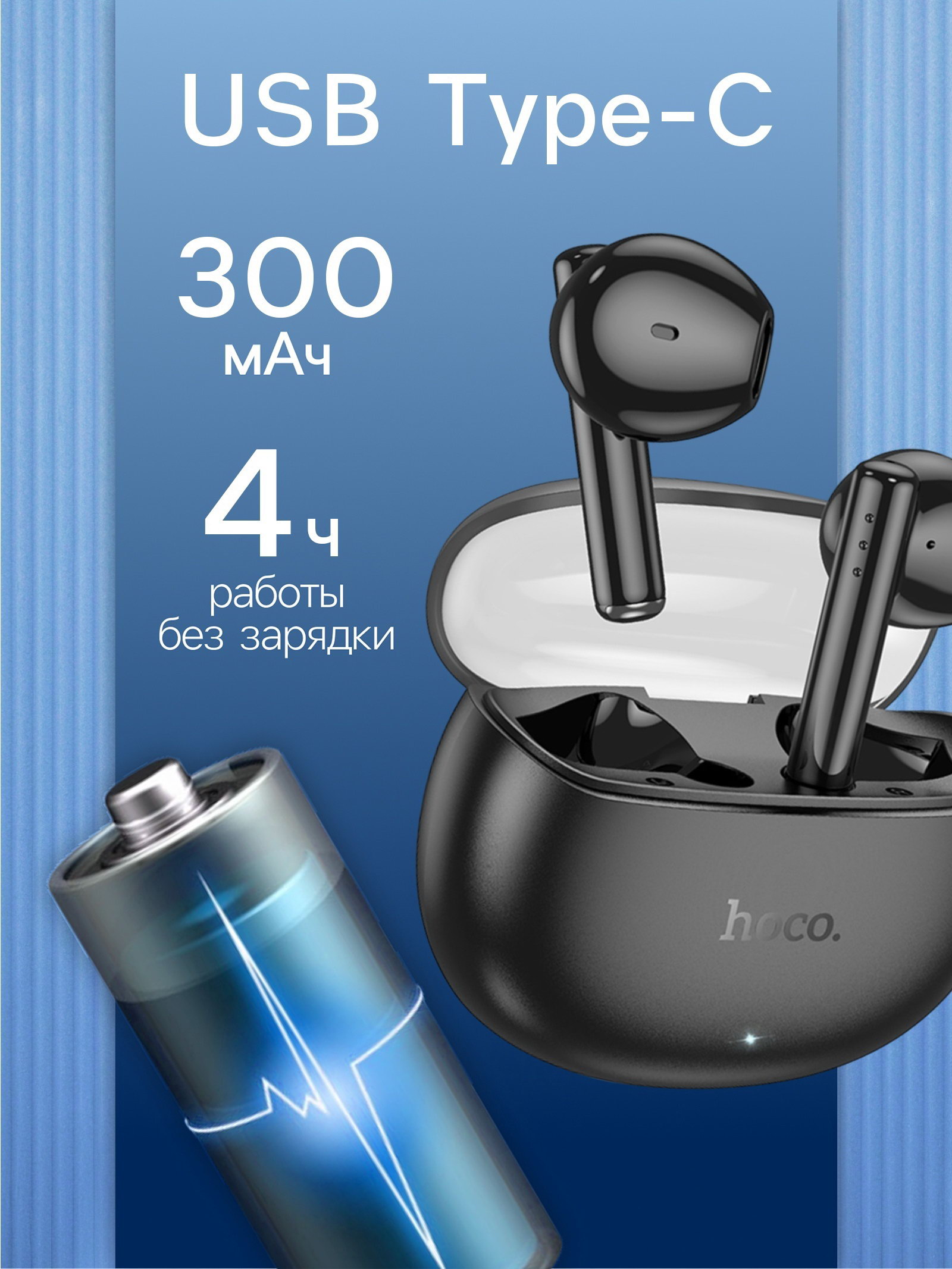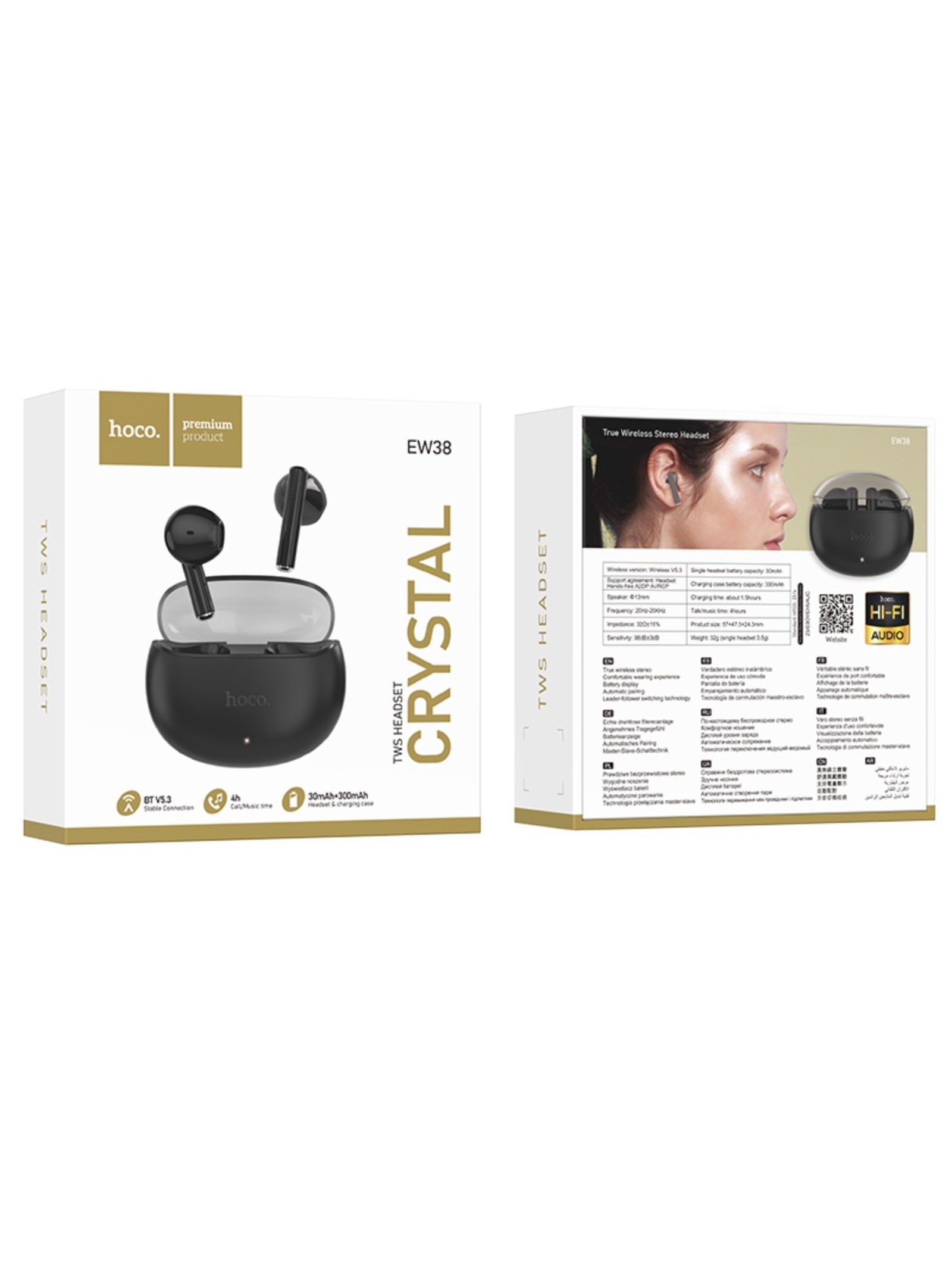 Наушники беспроводные EW38, TWS, вкладыши, Bluetooth 5.3, 30/300 мАч, шумоподавление, чёрные, 1x2x1 см., Hoco, Китай
