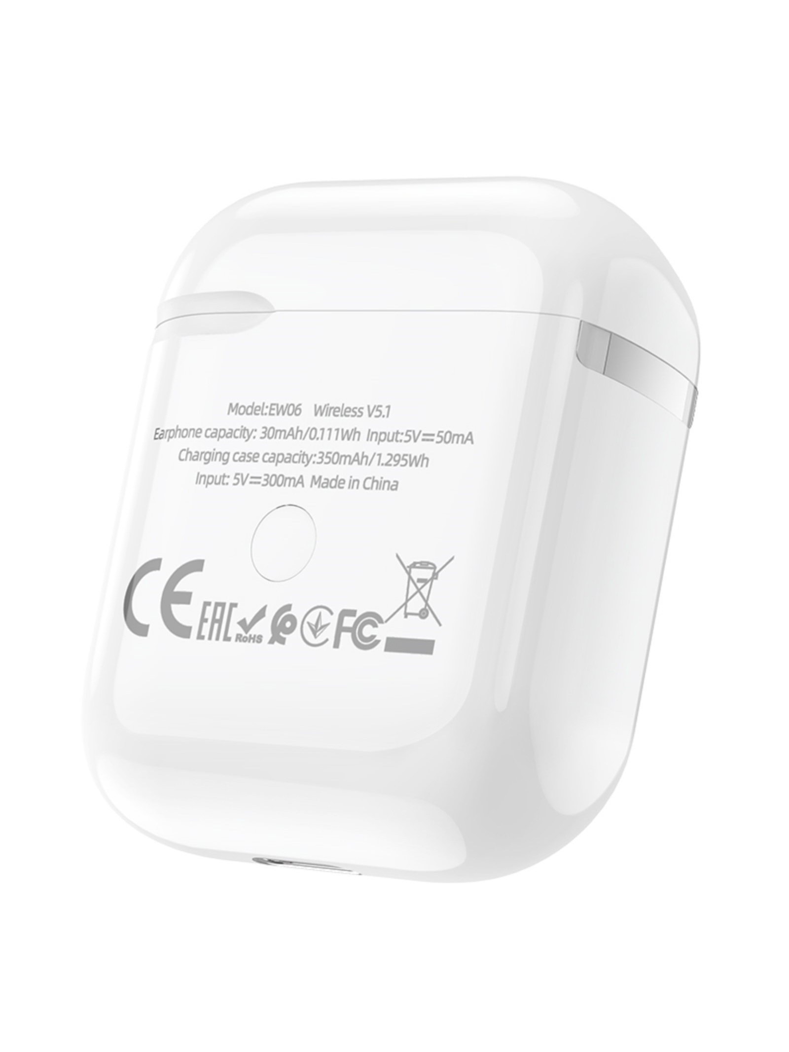 Наушники беспроводные EW06, TWS, вкладыши, Bluetooth 5.1, 35/300 мАч, белые, 1x2x1 см., Hoco, Китай