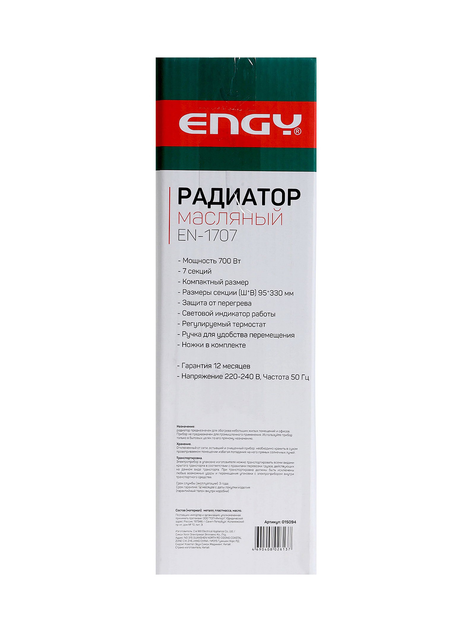 Обогреватель масляный EN-1707, 7 секций, напольный, 700 Вт, 7 ?2, белый, Engy, Китай