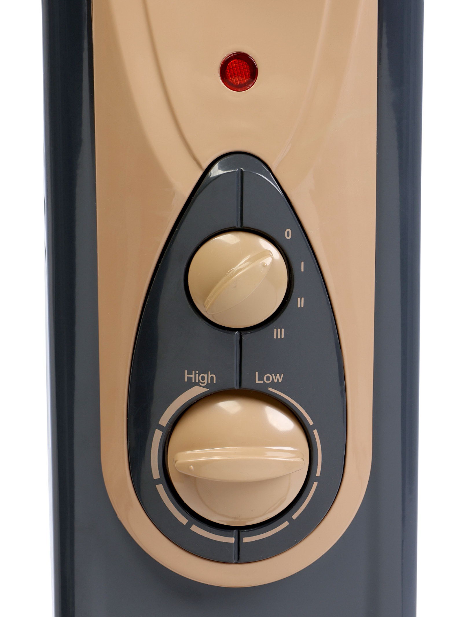 Размер упаковки: 14 x 59 x 29.5 см. tnved: 8516291000 Гарантийный срок, мес.: 12 Температурное ограничение: Нет Цвет: Серый Количество секций: 5 С пультом ДУ: Нет Тип управления: Механическое Отключение при опрокидывании: Нет Термостат: Да Встроенный тепловентилятор: Нет Ручка для перемещения: Нет Таймер: Нет Дисплей: Нет Индикация включения: Да Ножки-опоры: Да Функция антизамерзания: Нет Защита от перегрева: Да Мощность, Вт: 1000 Регулировка мощности: Да На колёсиках: Да Масляный радиатор серии Loft мощностью 1000 Вт и с пятью секциями стильный и функциональный источник тепла. В сером исполнении он органично впишется в современный интерьер, а механическое управление делает работу простой и понятной. Благодаря компактному дизайну и наличию колёсиков его легко перемещать, а встроенный термостат позволит поддерживать комфортную температуру. Устройство хорошо подходит для обогрева жилых зон средней площади. Световой индикатор подскажет, что прибор в работе, а защита от перегрева добавляет уверенности в безопасной эксплуатации даже при длительном включении. | ||
