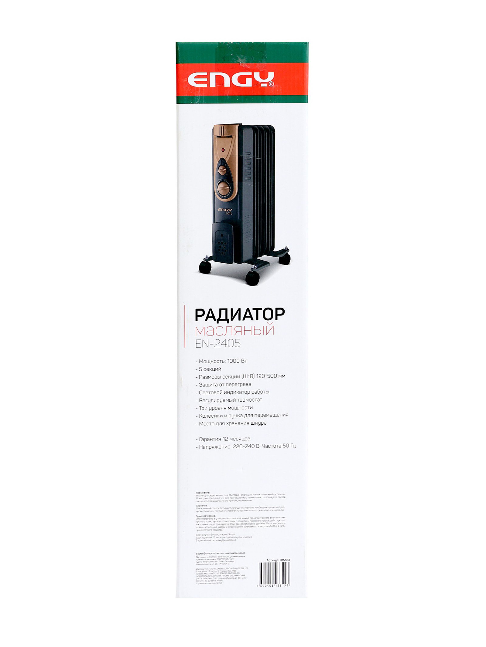 Обогреватель EN-2405 Loft, масляный, 1000 Вт, 5 секций, 3 уровня мощности, Engy, Китай
