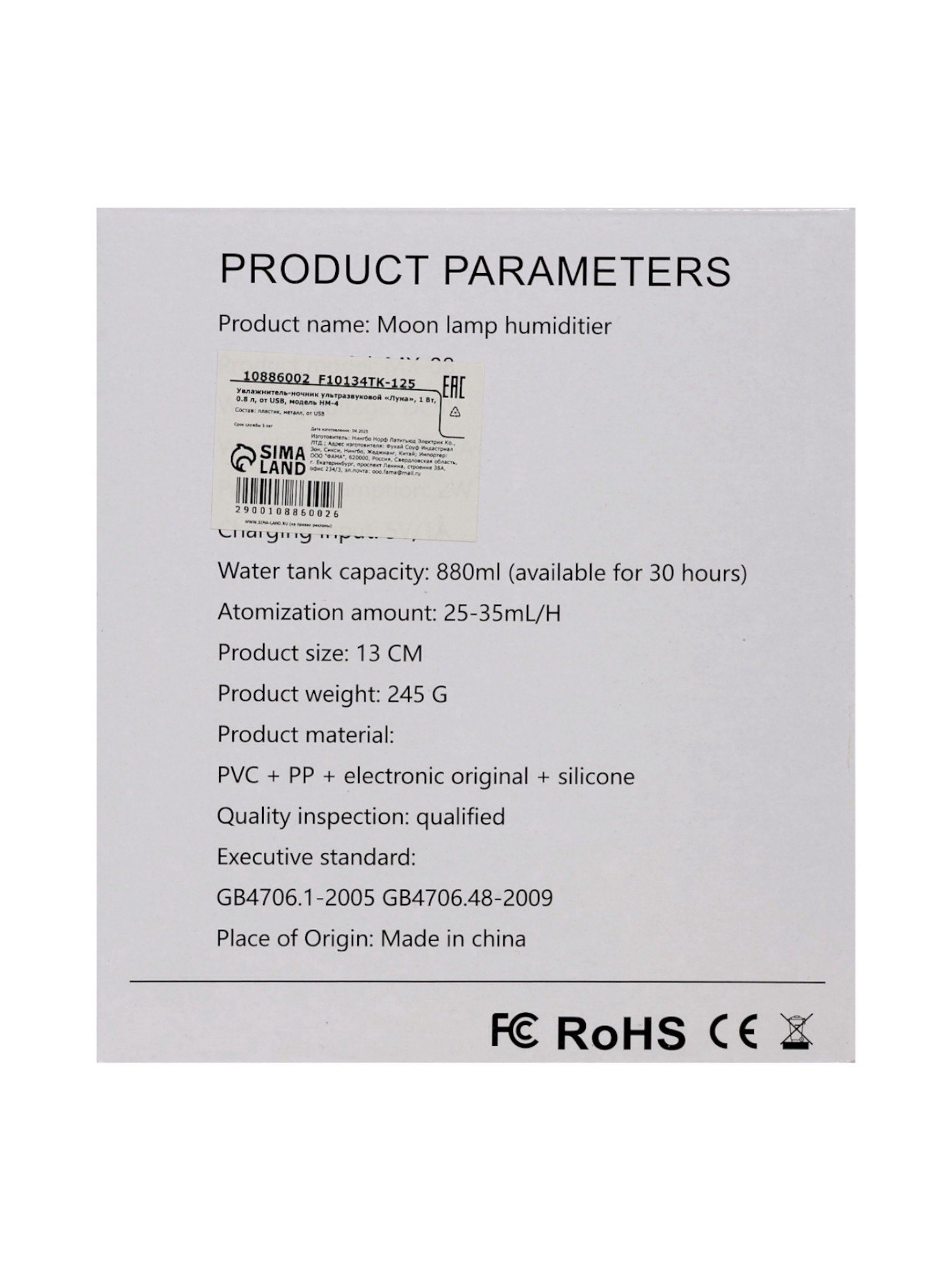 Увлажнитель-ночник HM-4 "Луна", ультразвуковой, 1 Вт, 0.8 л, от USB, 15x15x17 см., Китай