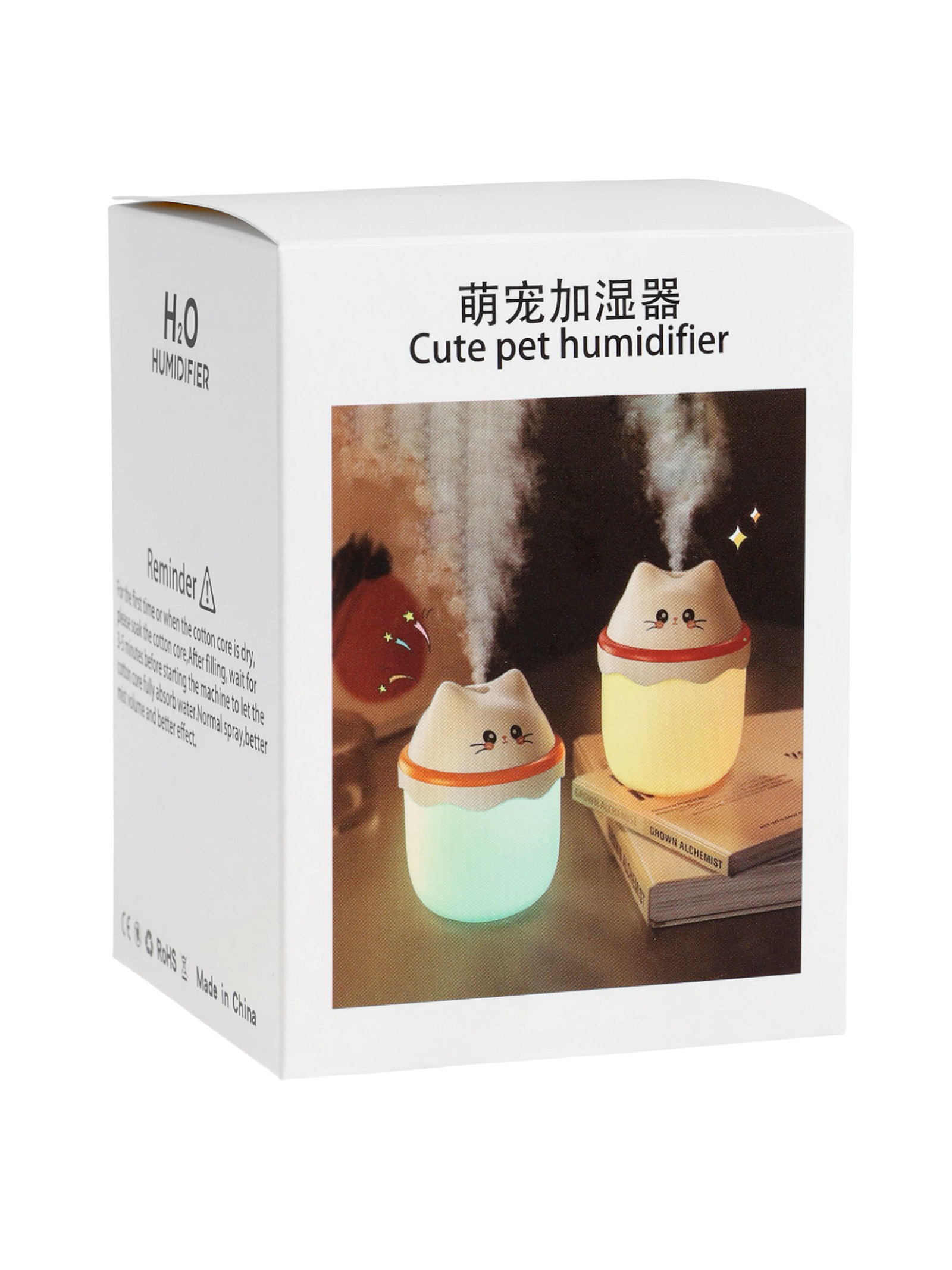 Увлажнитель ультразвуковой HM-16 "Котенок", с подсветкой, 210 мл, от USB, 9.2x9.2x9.5 см., Китай