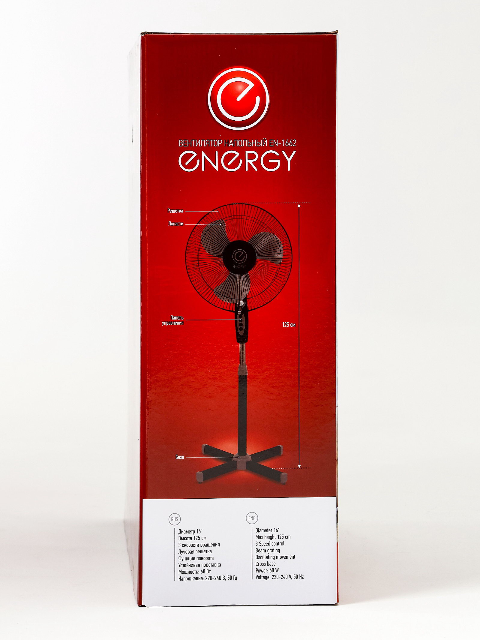 Вентилятор EN-1662, напольный, 45 Вт, 3 режима, чёрно-серый, Energy, Китай