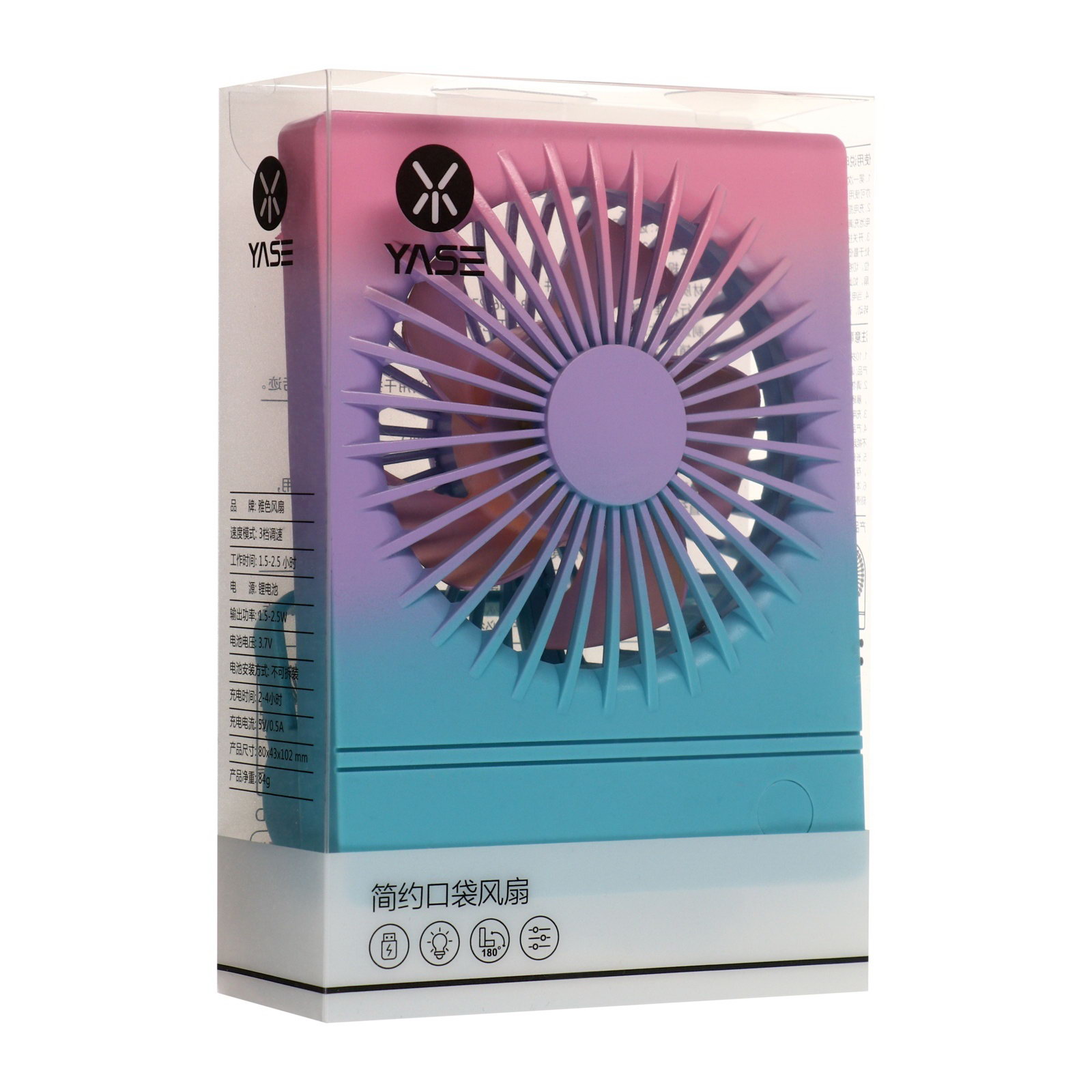 Портативный настольный вентилятор YS2202B, 500 мАч, 3 режима, вход micro-USB, провод, градиент холодный, 8x2.5x10 см., Китай