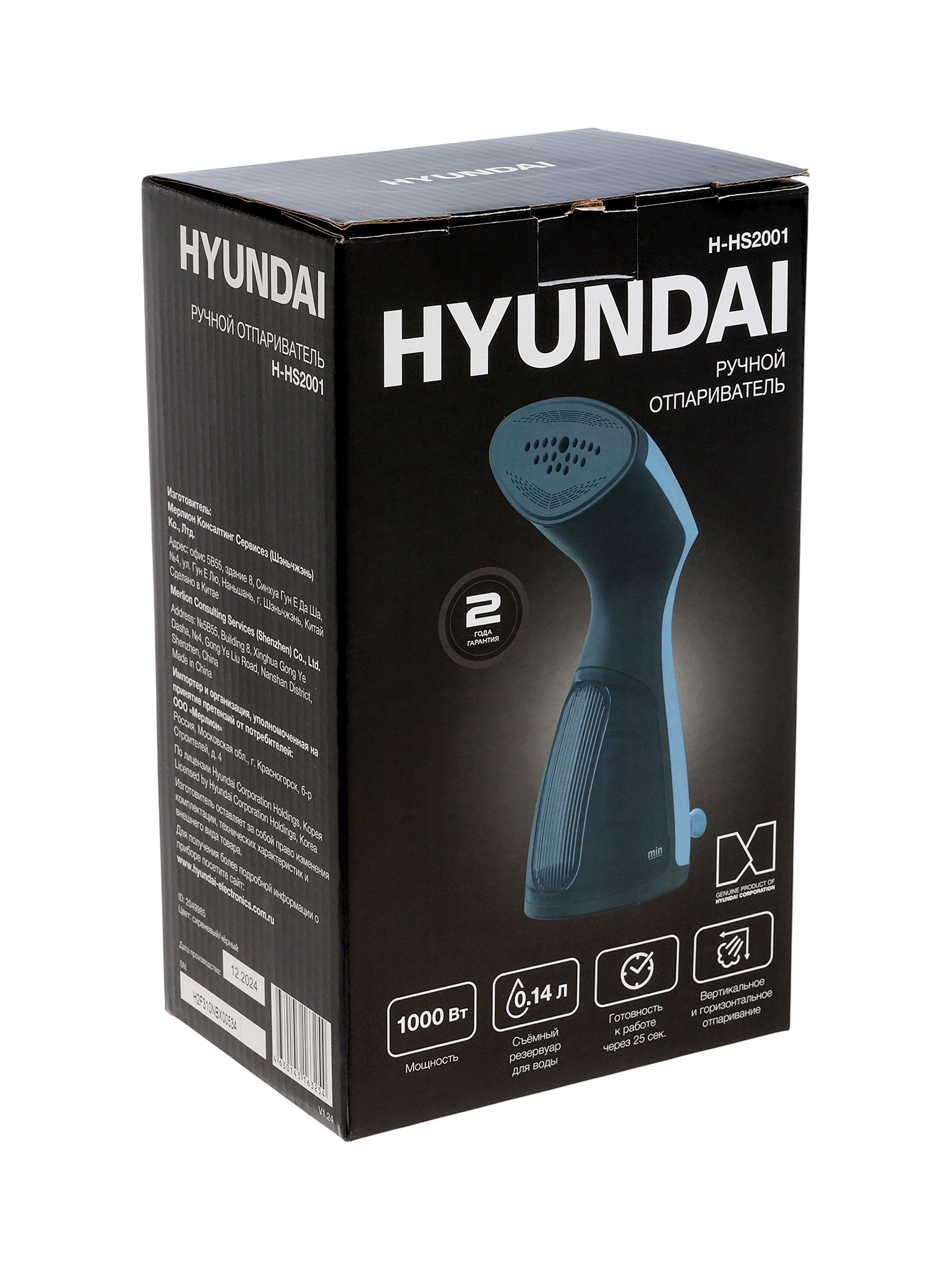 Отпариватель H-HS2001, ручной, 1000 Вт, 140 мл, 22 г/мин, сиреневый, Hyundai, Китай