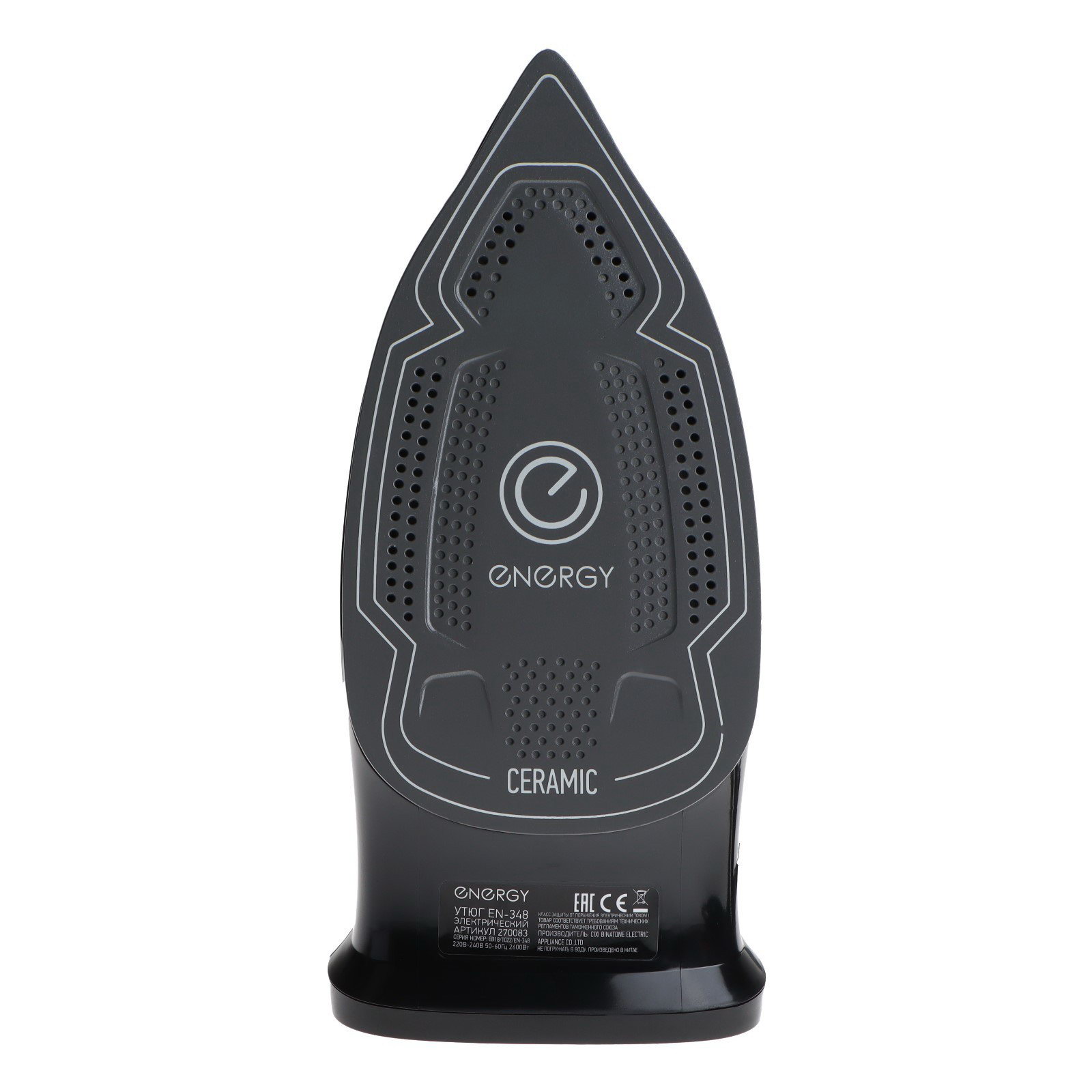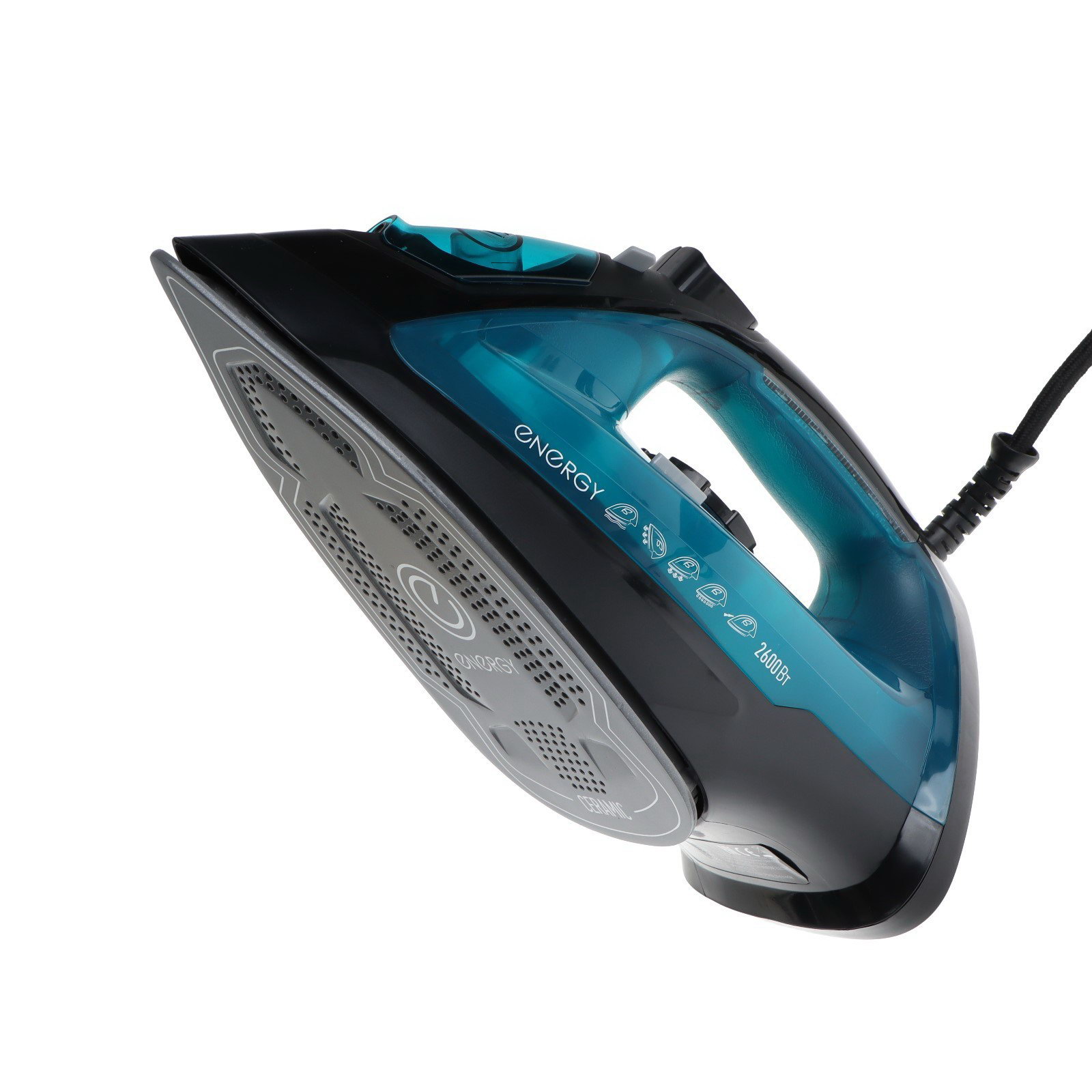 Утюг EN-348, 2600 Вт, керамическая подошва, 350 мл, чёрно-бирюзовый, Energy, Китай