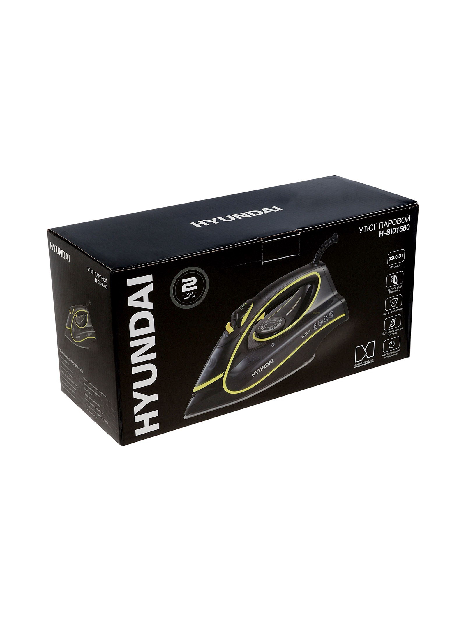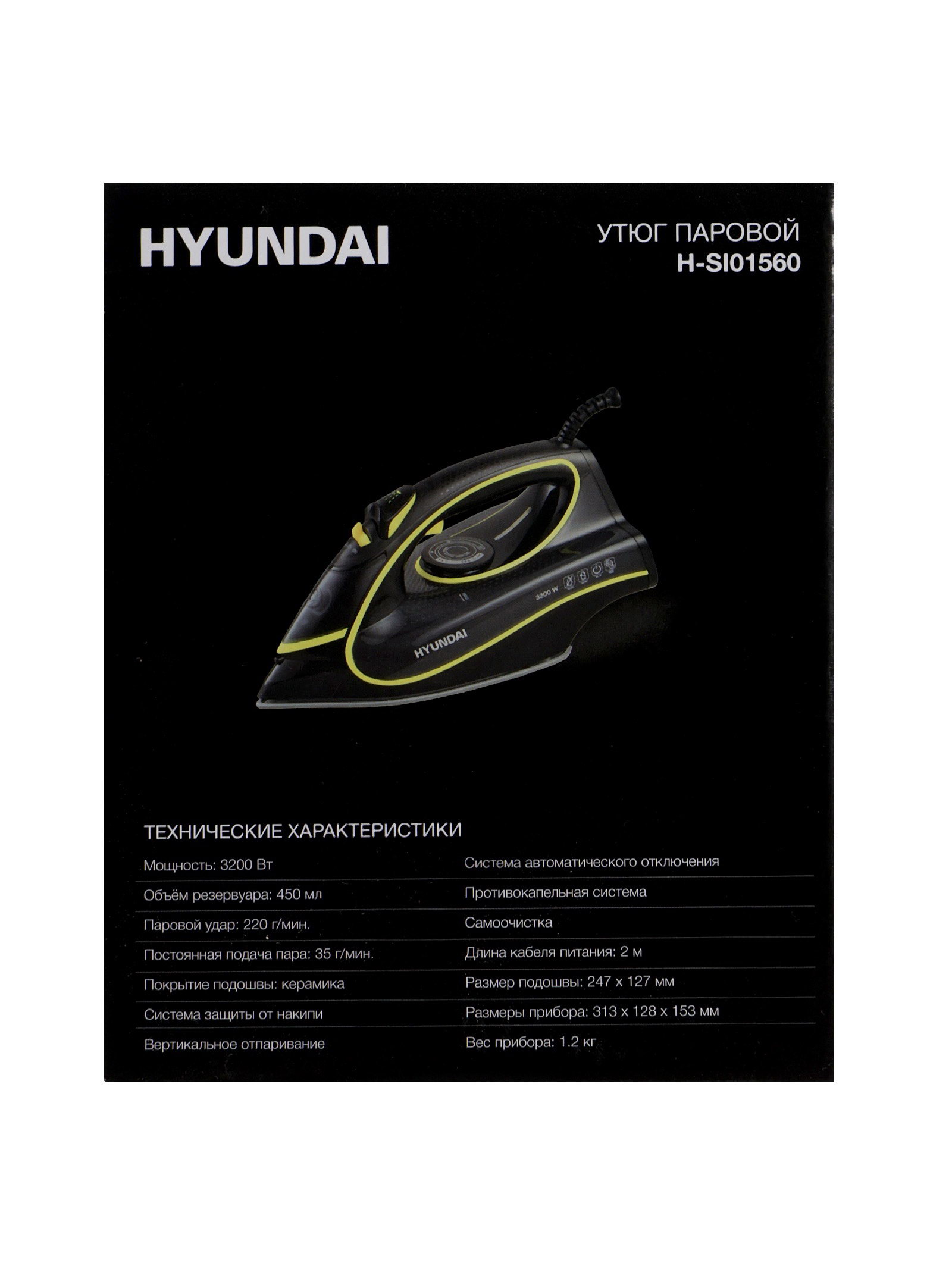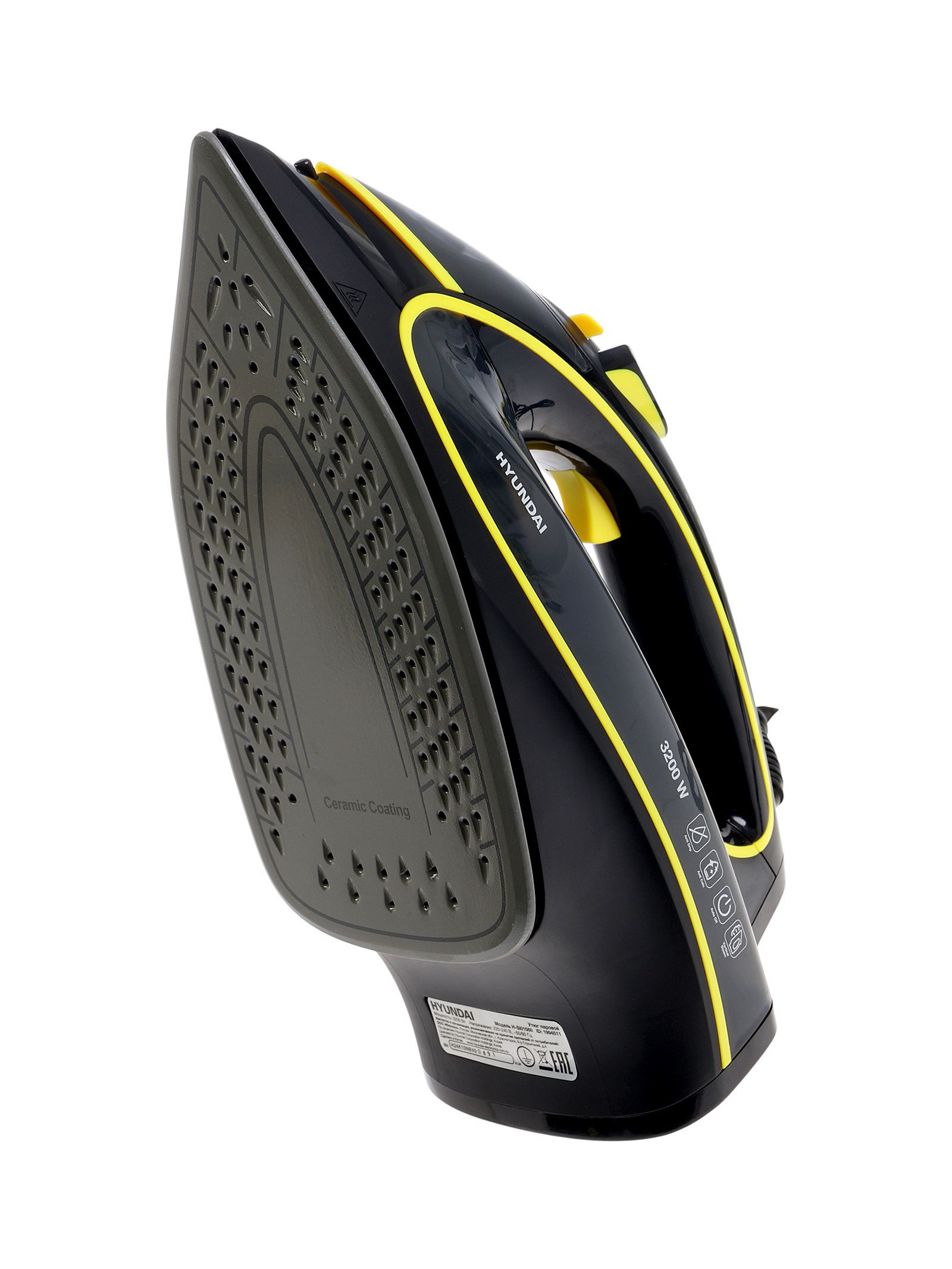 Утюг H-SI01560, 3200 Вт, керамическая подошва, 35 г/мин, 450 мл, черно-желтый, Hyundai, Китай