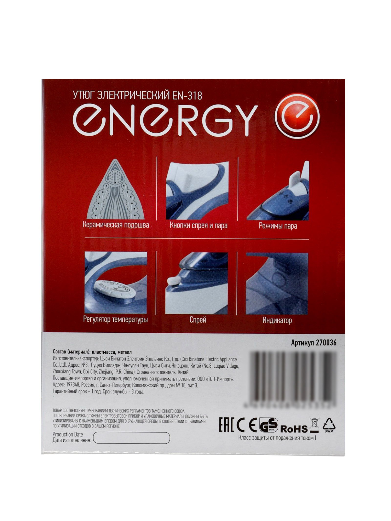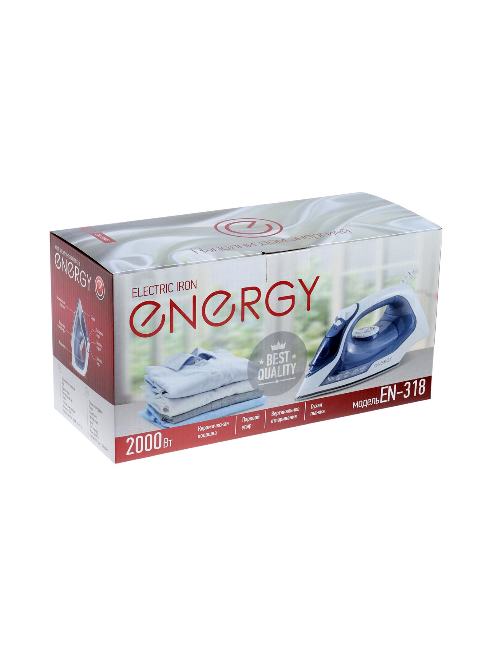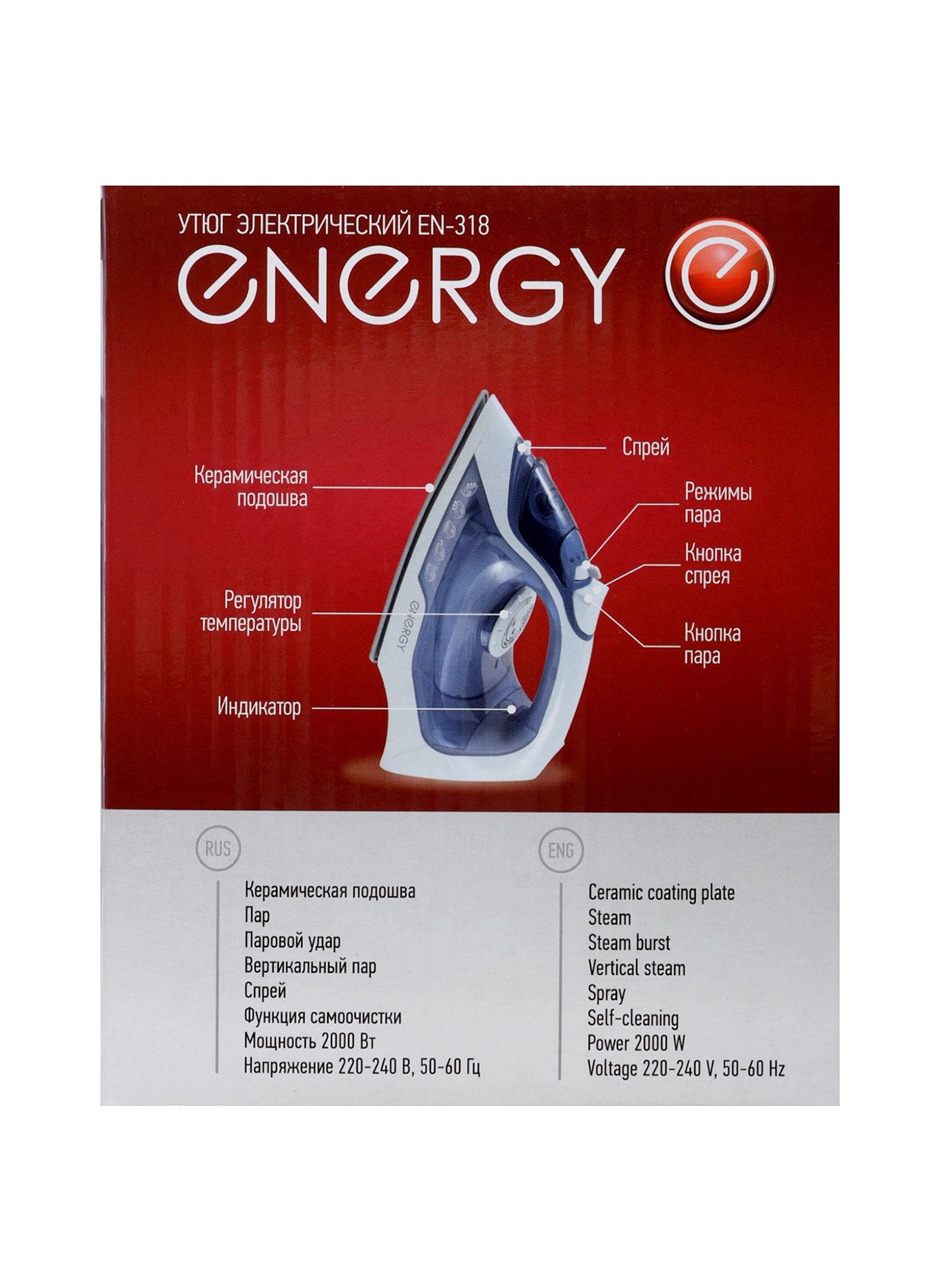 Утюг EN-318, 2000Вт,керамическая подошва, 250мл, вертикальное отпаривание,сиреневый, Energy, Китай