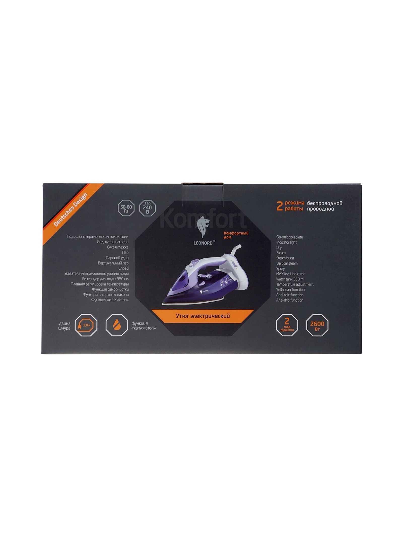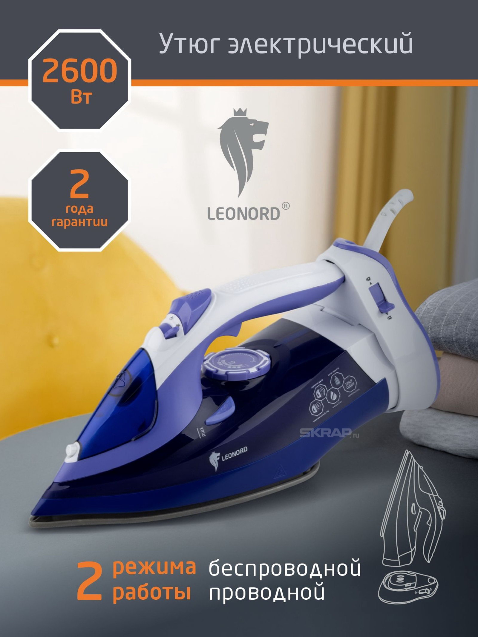 Утюг LE-1807U, 2600 Вт, беспроводной/проводной, керамическая подошва, 28 г/мин, 350 мл, Leonord, Китай