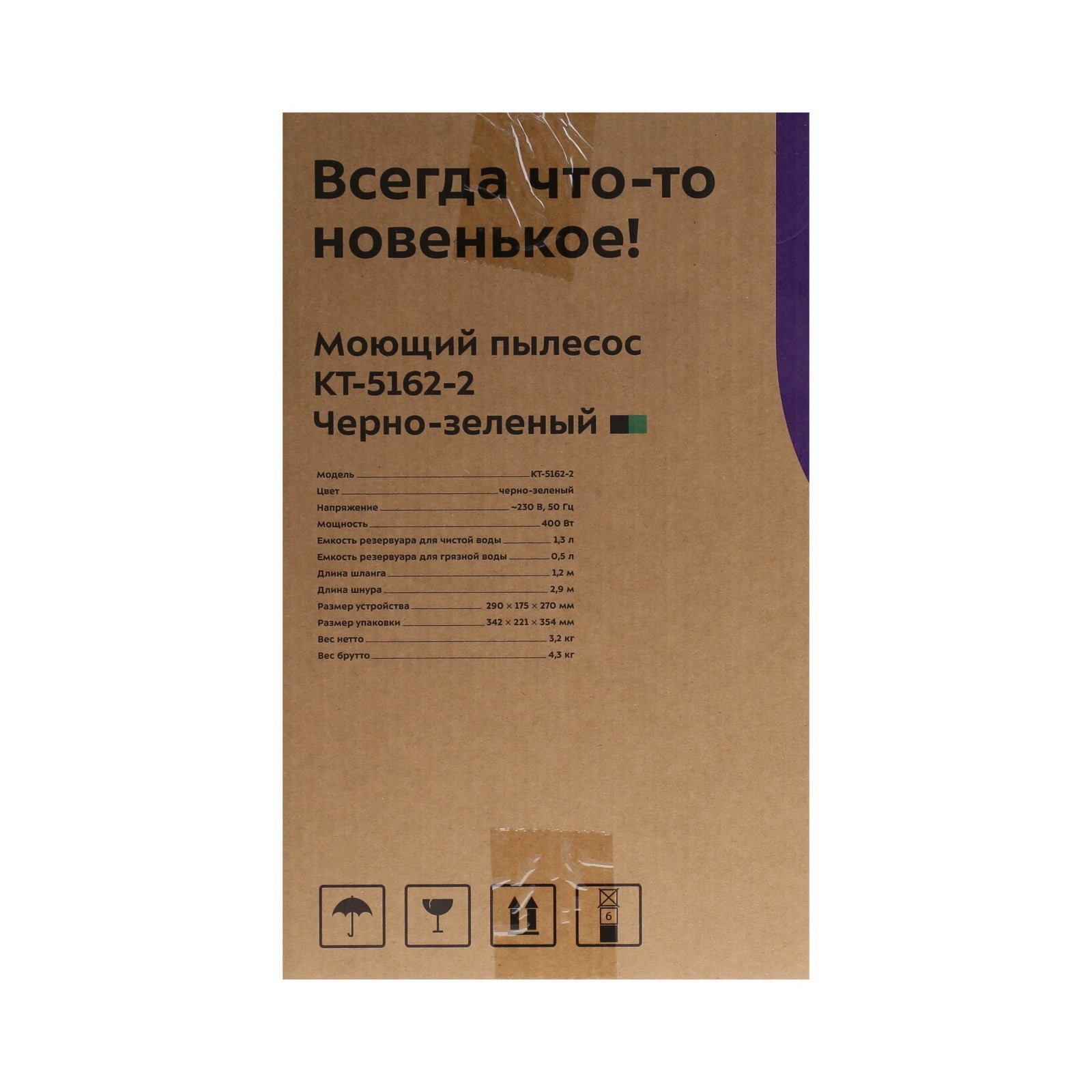 Пылесос КТ-5162-2, моющий, 400 Вт, 1.3/0.5 л, чёрно-зелёный, Kitfort, Китай