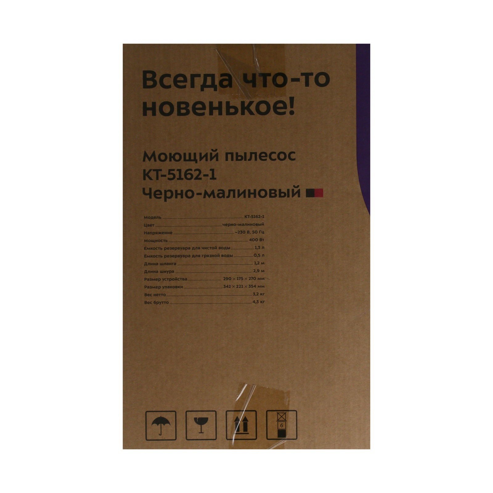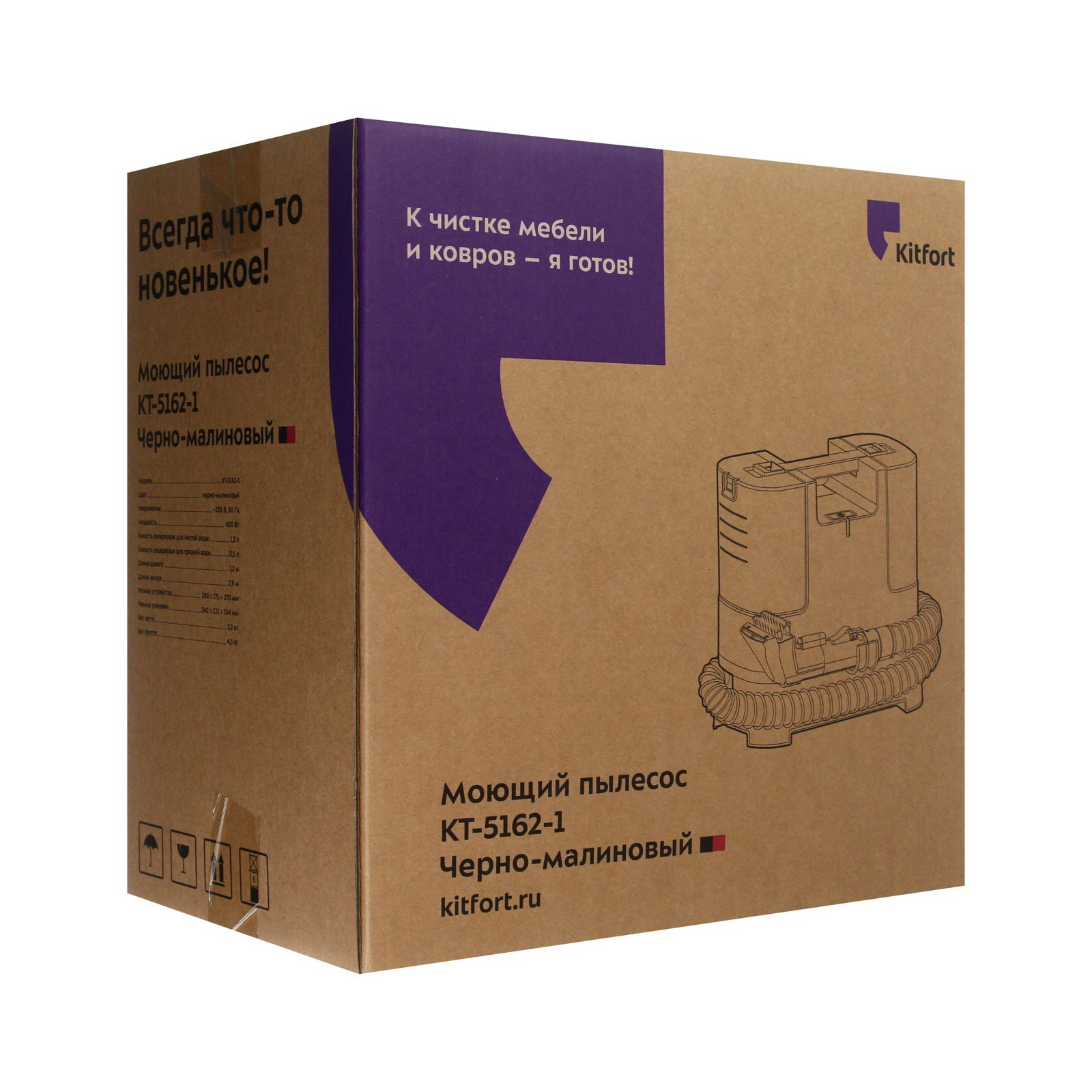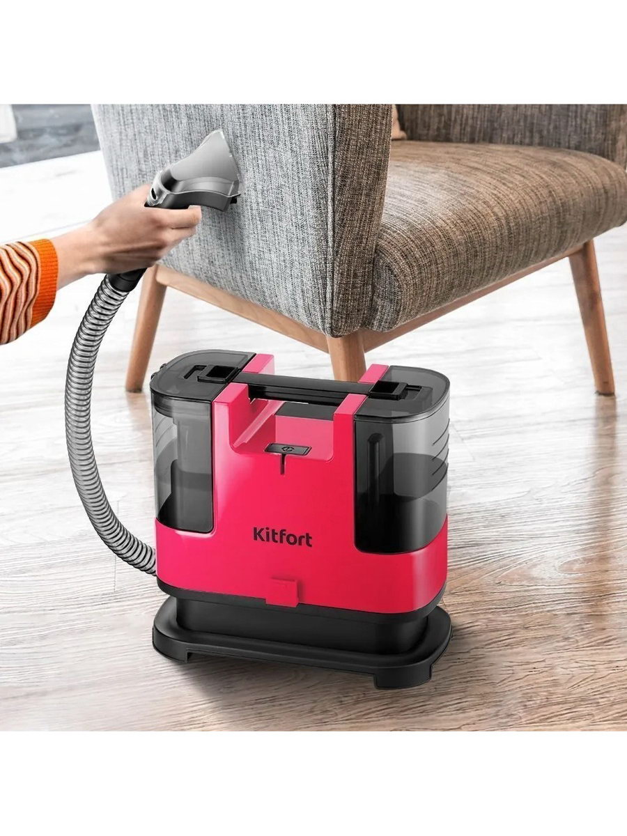 Пылесос КТ-5162-1, моющий, 400 Вт, 1.3/0.5 л, чёрно-малиновый, Kitfort, Китай