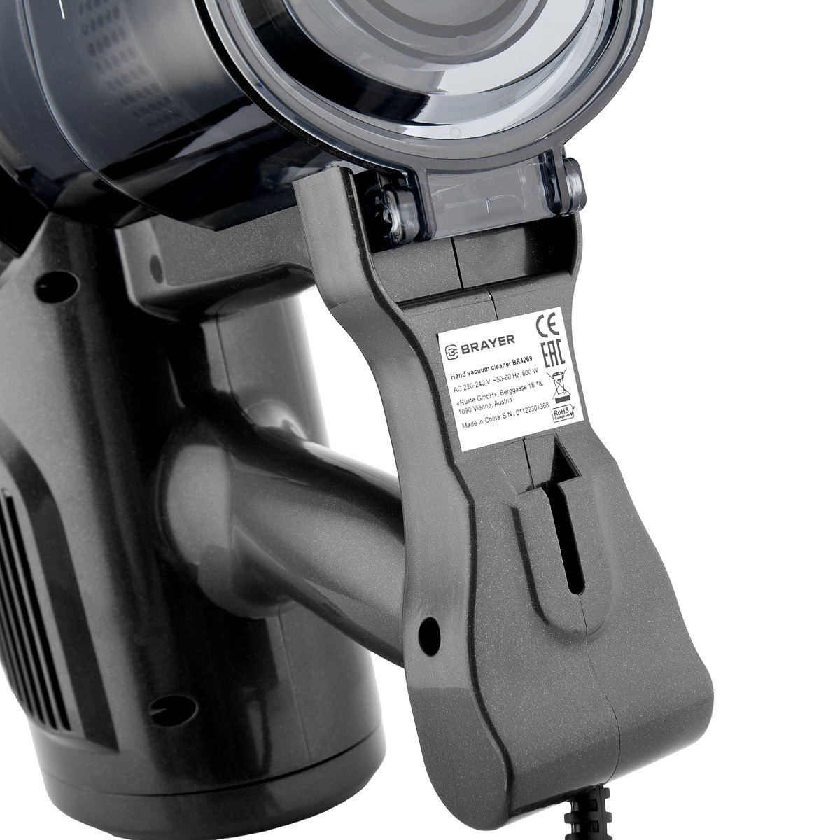 Пылесос 4269BR, вертикальный, 600 Вт, 0.8 л, 70 дБ, шнур 8 м, 2.8 кг, 2 насадки, чёрный, BRAYER, Китай