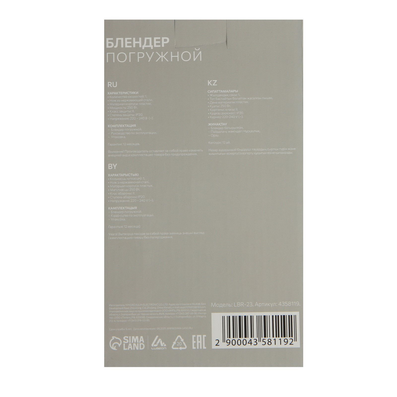 Блендер Luazon LBR-23, погружной, 250 Вт, 1 скорость, бело-фиолетовый, 6x5x33.5 см., Luazon Home, Китай