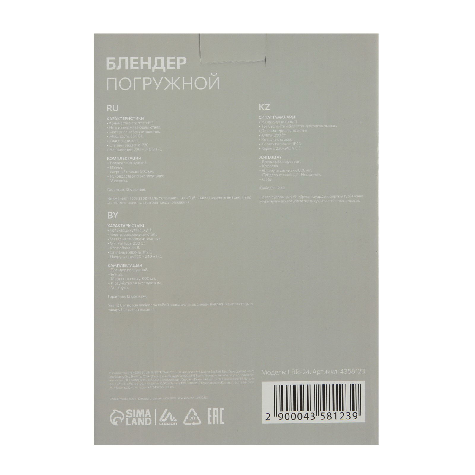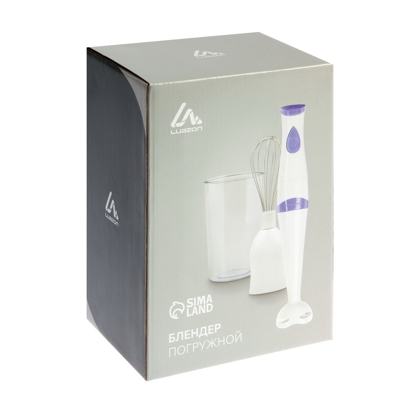 Блендер Luazon LBR-24, погружной, 250 Вт, 0.6 л, 1 скорость, бело-фиолетовый, 6.5x5x33.5 см., Luazon Home, Китай