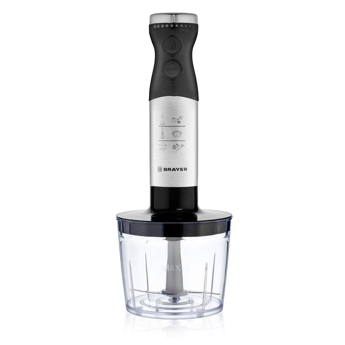 Блендер погружной 1244BR, 800 Вт, 4 насадки, стакан 700 мл, чаша 500 мл, чёрный, BRAYER, Китай