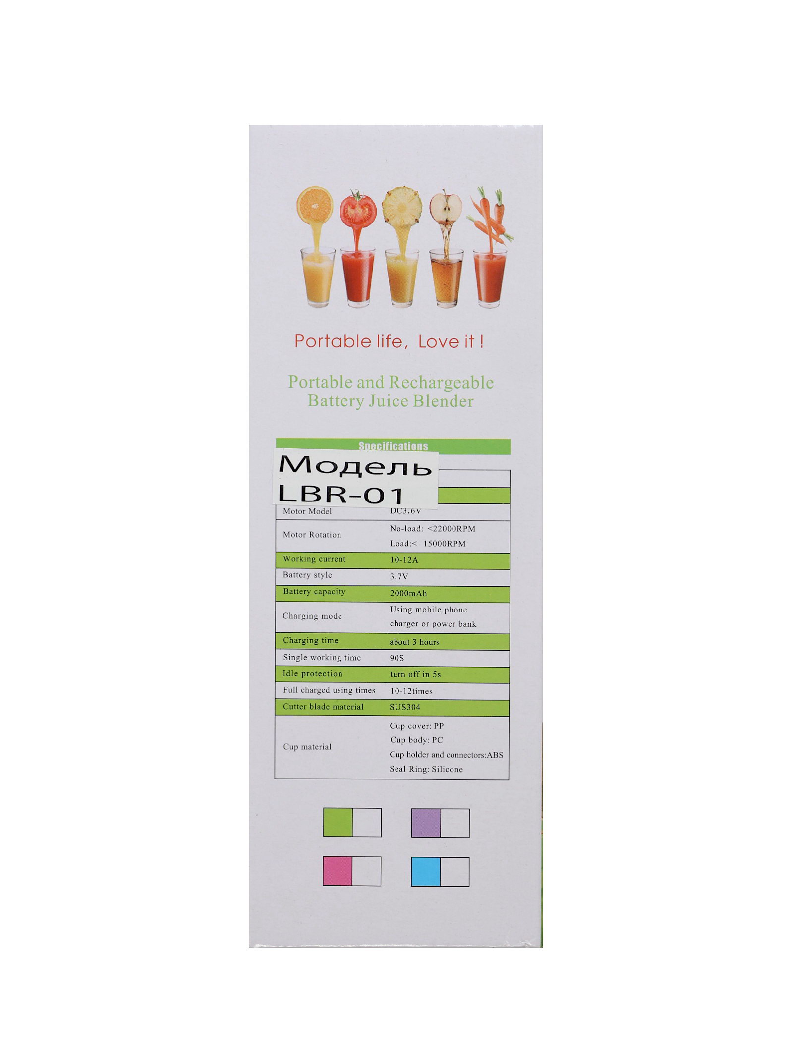 Блендер LBR-01, портативный, 24 Вт, 380 мл, USB, фиолетовый, 8x23.5x8 см., Китай