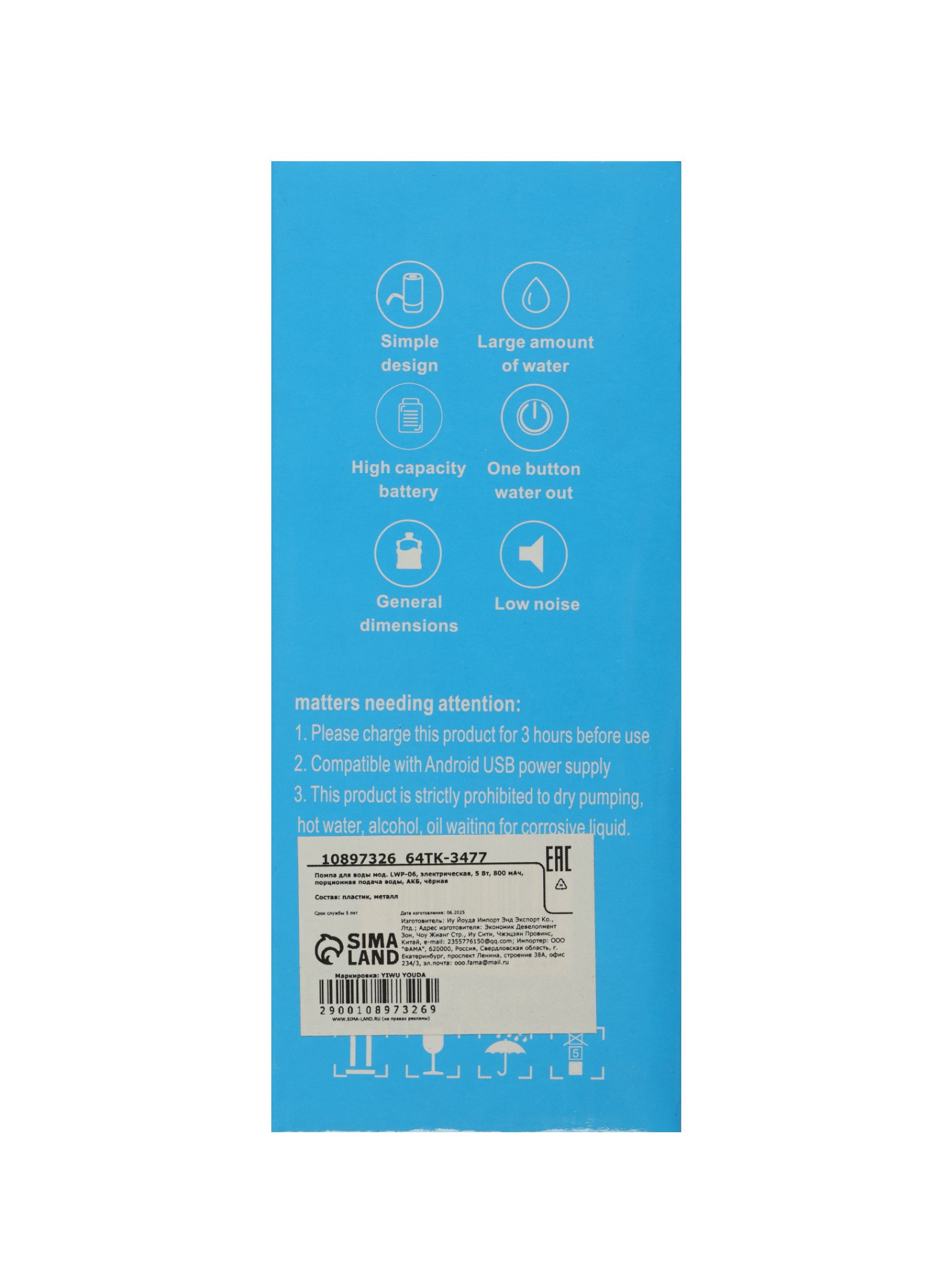 Помпа для воды LWP-06, электрическая, 5 Вт,800 мАч, порционная подача воды, АКБ, чёрная, 15x14x6.5 см., Китай