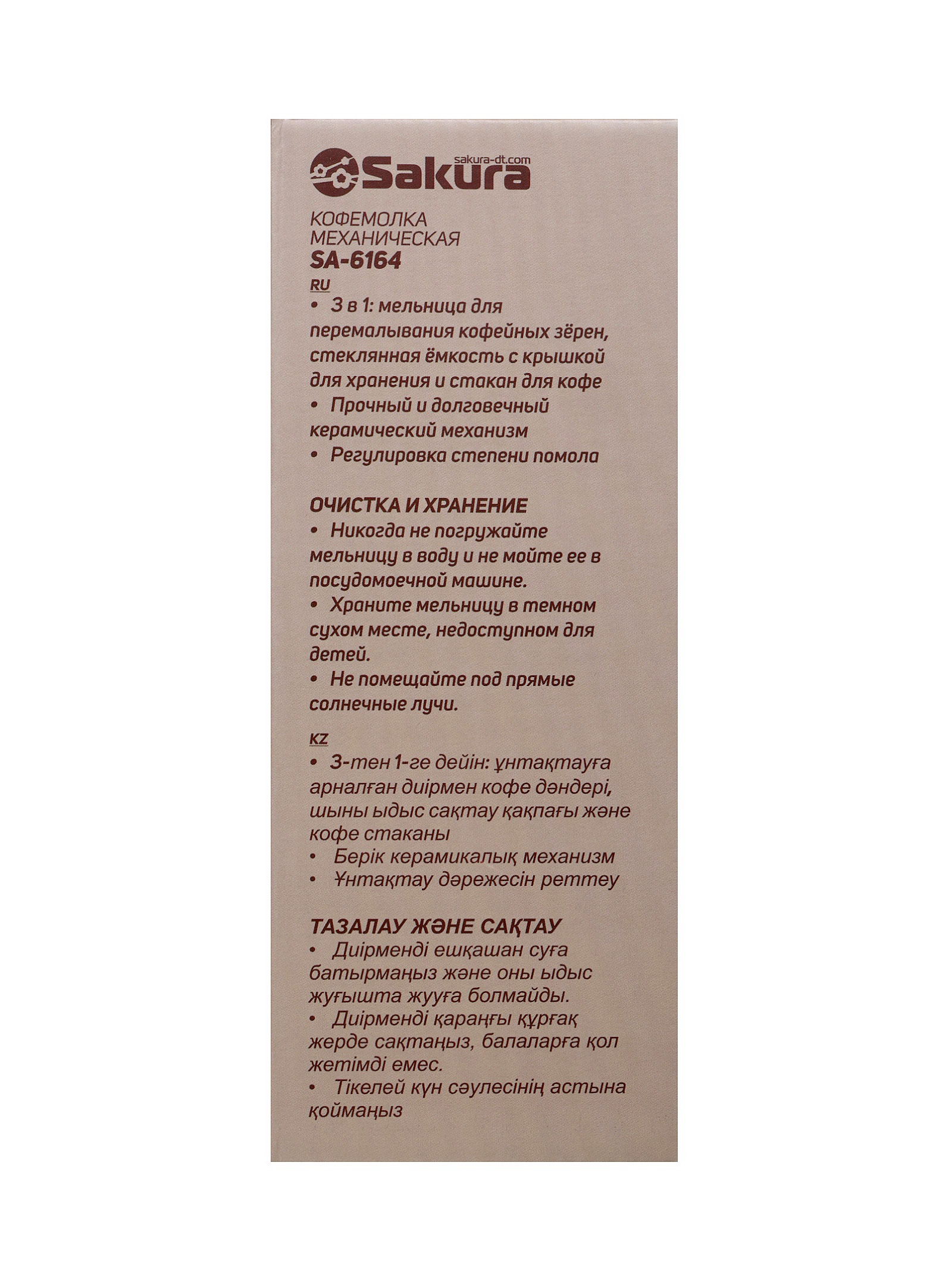 Кофемолка SA-6164, 3 в 1, мельница, стеклянная ёмкость для хранения, стакан для кофе, SAKURA, Китай