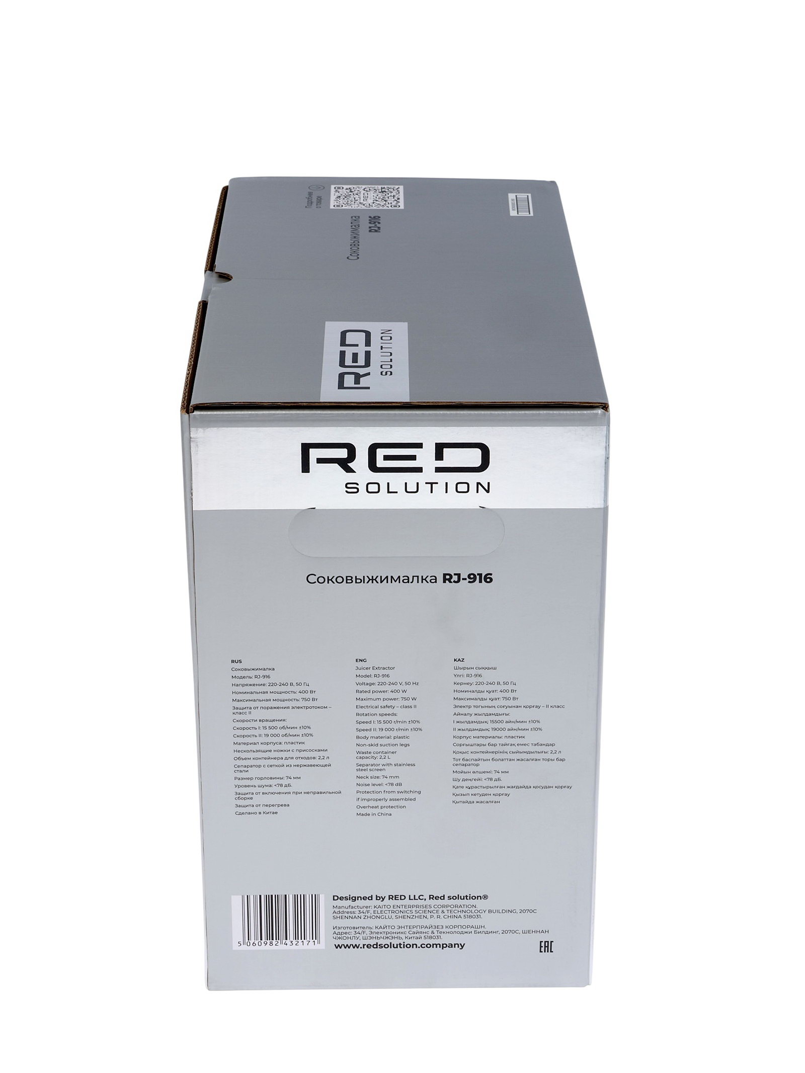 Соковыжималка RJ-916, центробежная, 750 Вт, 2 скорости, 2.2 л, 19000 об/мин, чёрная, RED solution, Китай