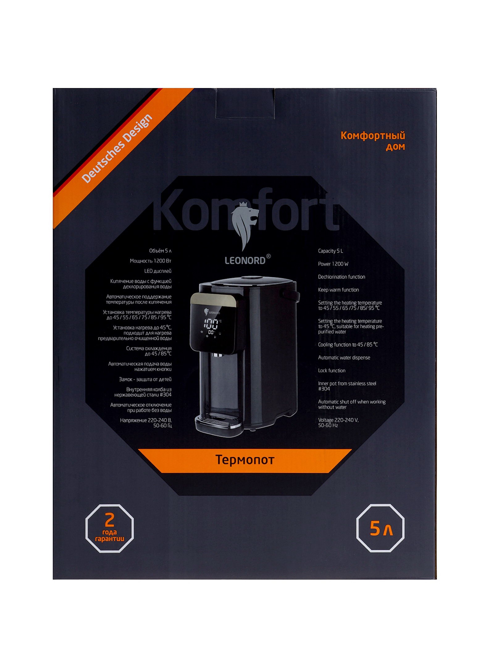 Термопот Leonord LE-1541, 1200 Вт, 5 л, регулировка температуры, сенсорная панель, 8 режимов, чёрный, 5000 мл., Китай