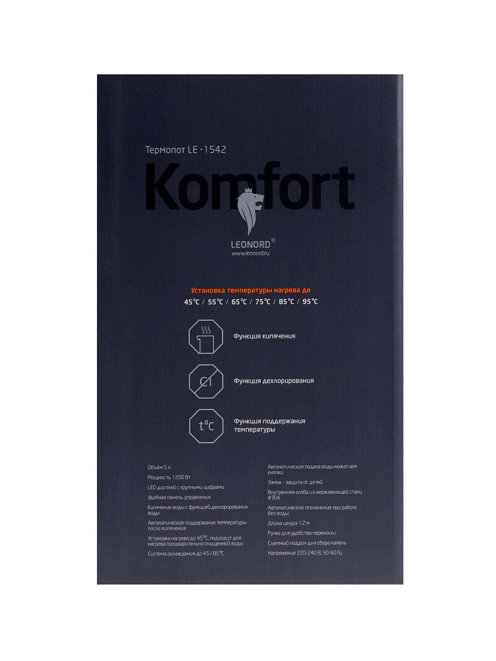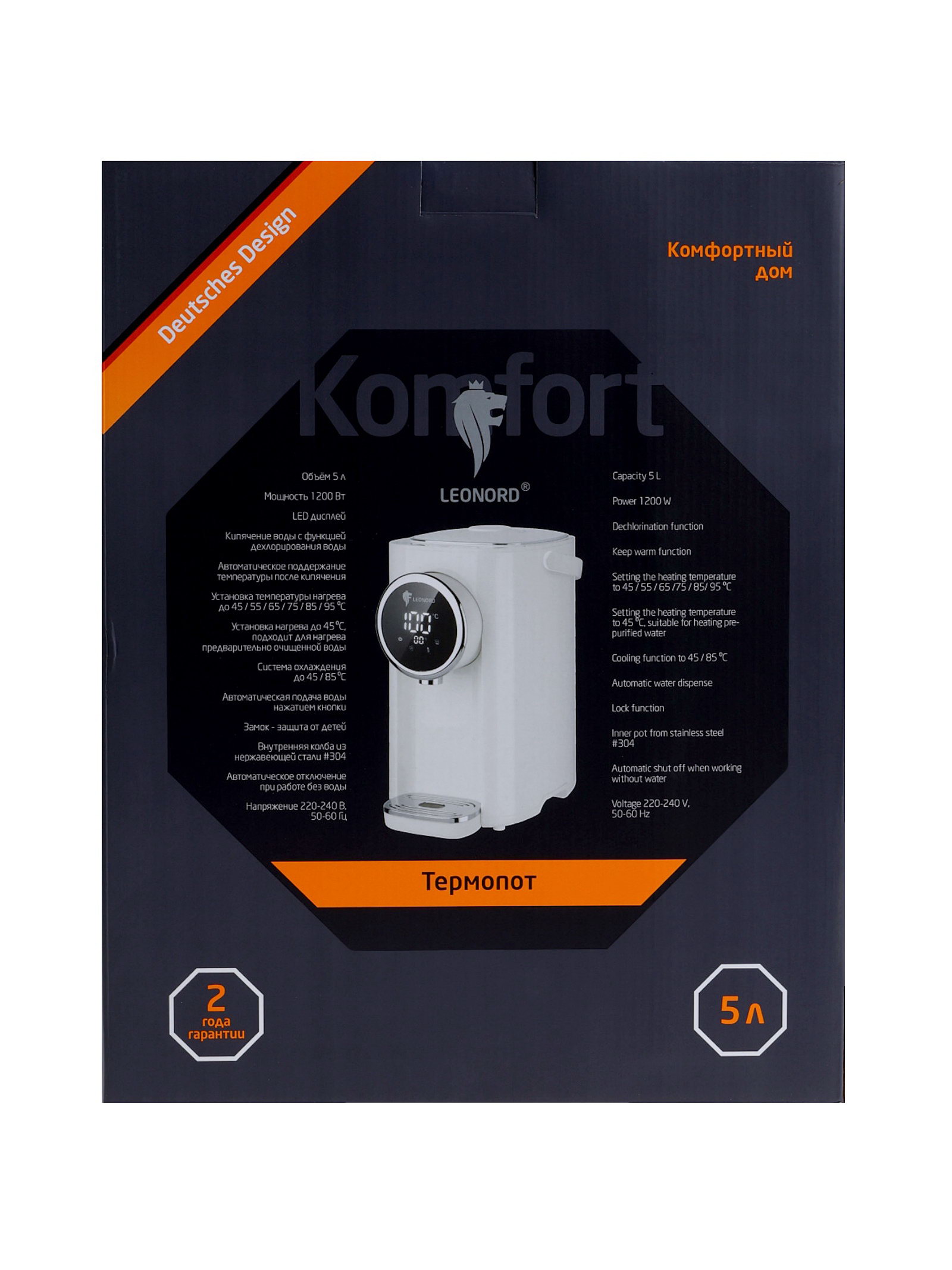 Термопот Leonord LE-1542, 1200 Вт, 5 л, регулировка температуры, сенсорная панель, 8 режимов, белый, 5000 мл., Китай