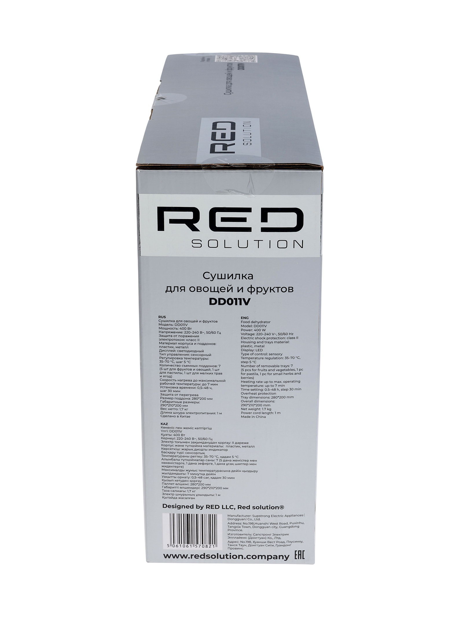 Сушилка для овощей и фруктов DD011V, 400 Вт, 35–70°C, 0.5–48 ч, 7 поддонов, серая, RED solution, Китай
