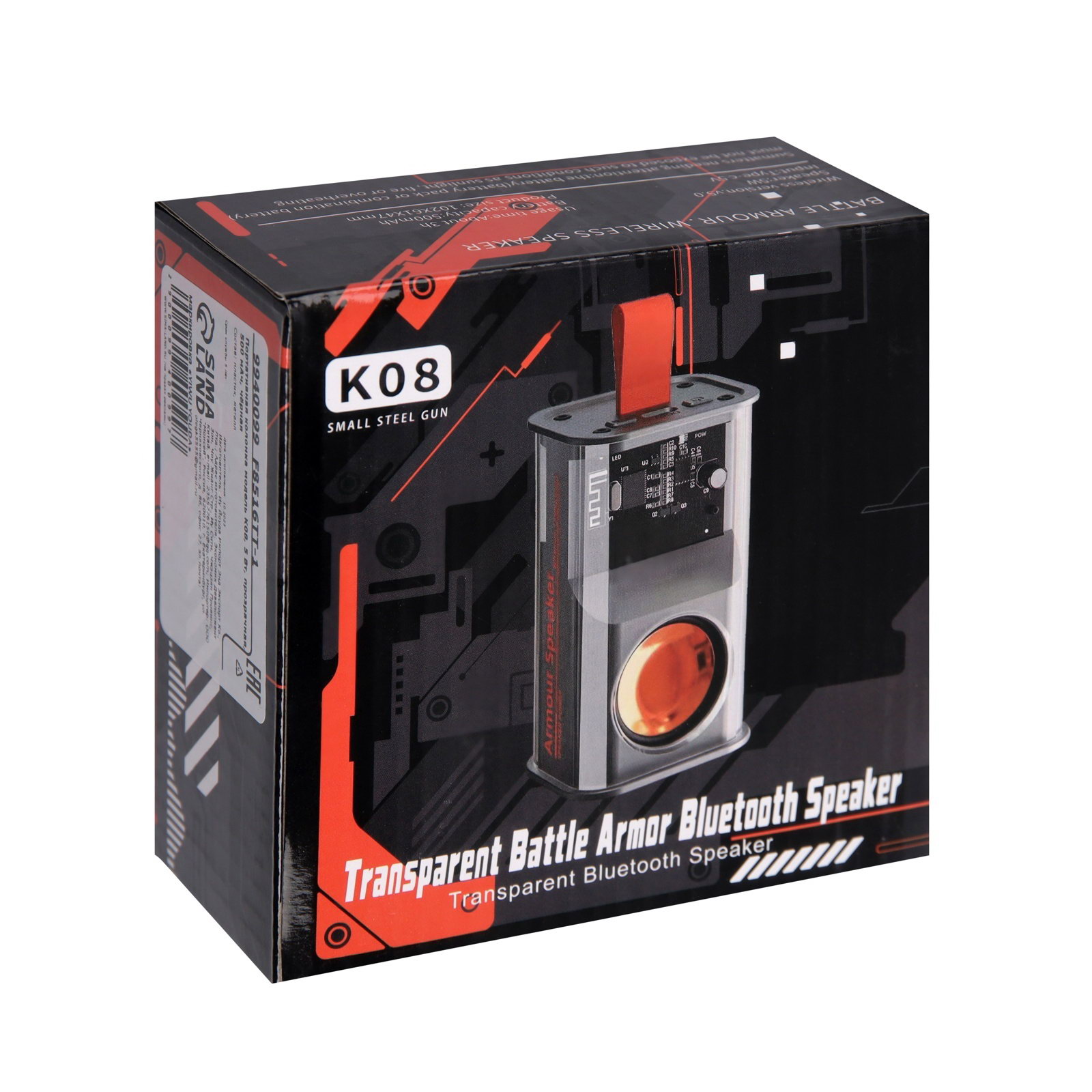 Портативная колонка K08, 5 Вт, прозрачная, подвес, 500 мАч, подсветка, чёрная, Китай