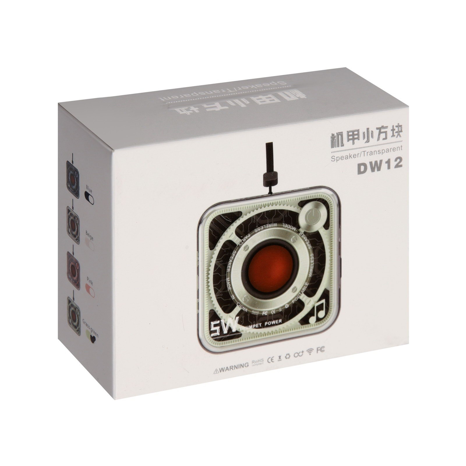 Портативная колонка DW12, 5 Вт, прозрачная, 400 мАч, зелёная, Китай