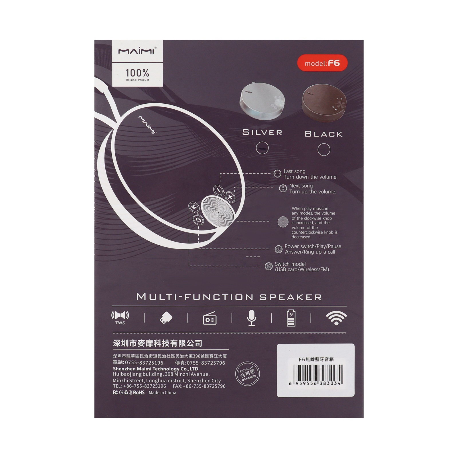 Портативная колонка F6, microUSB, FM, BT 5.1, 1200 мАч, серебристая, Maimi, Китай