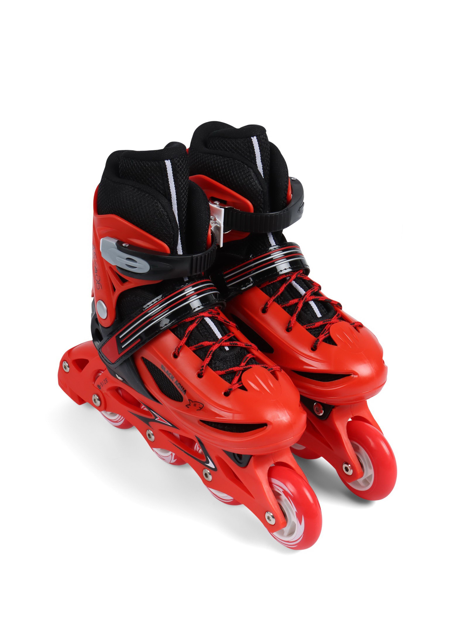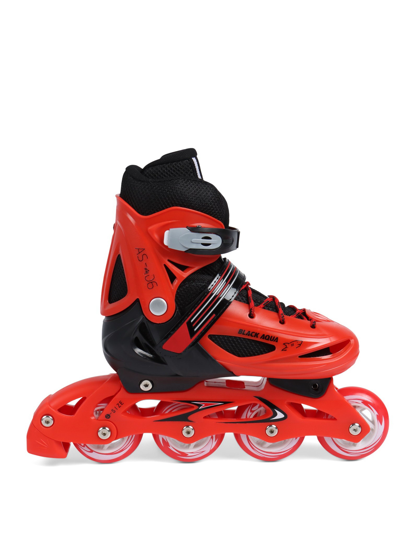 Коньки детские раздвижные р. 30-33, для фитнеса, с роликовой платформой, красные, чёрные, BlackAqua, Китай