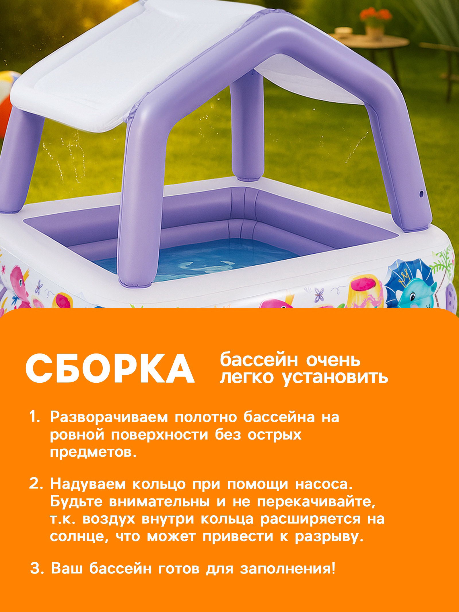 Бассейн надувной детский "Домик", 157 x 157 x 122 см, с навесом, 57470NP, 280000 мл., INTEX, Китай
