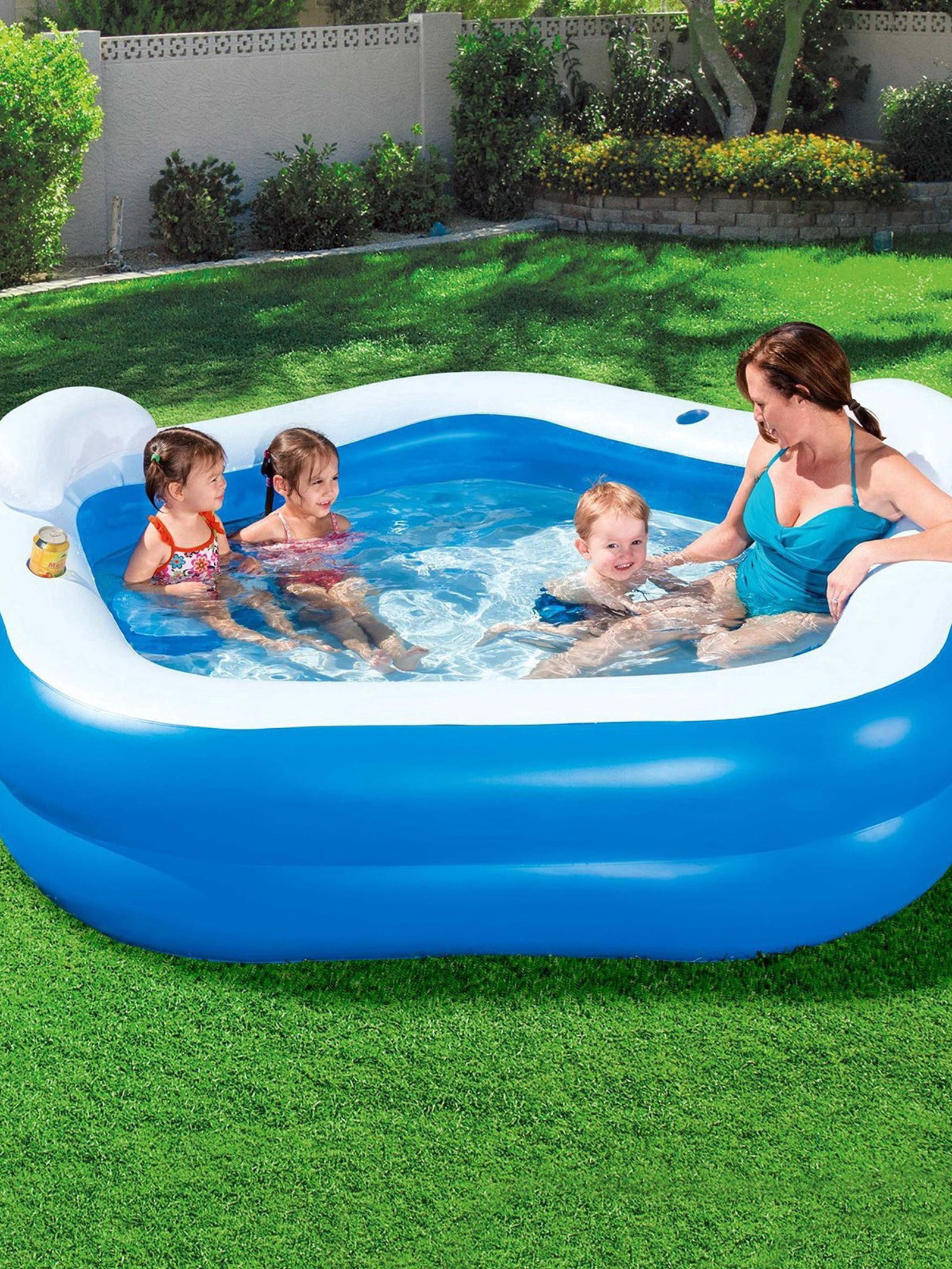 Бассейн надувной 213x206x69 см, с сиденьями и подголовниками, от 6 лет, 54153, 213х213х69 см., Bestway, Китай
