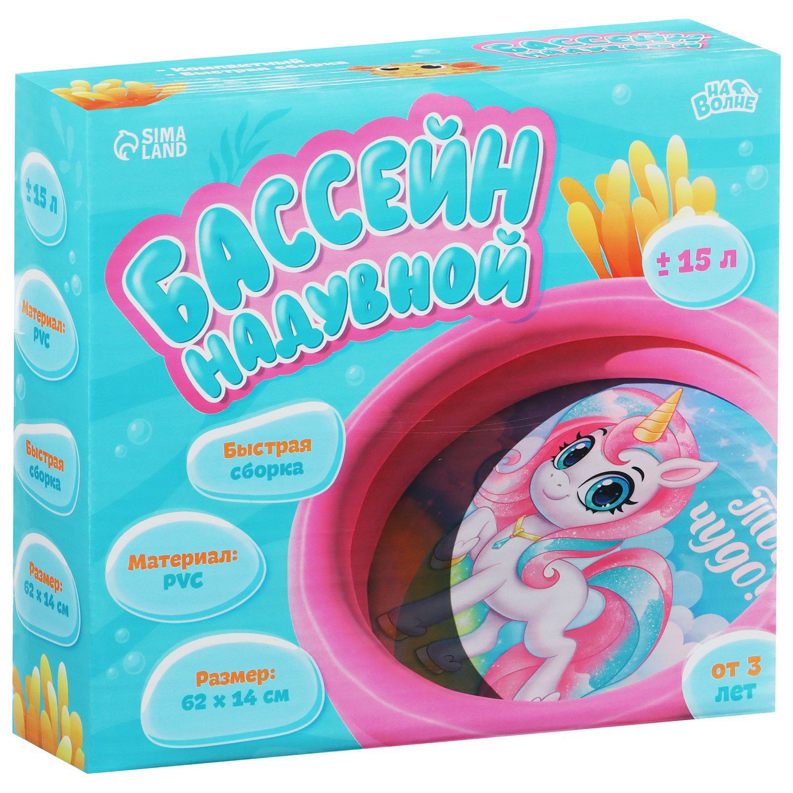Бассейн надувной "На волне: Единорог", 62x14 см, 62х62х1 см., На волне, Китай