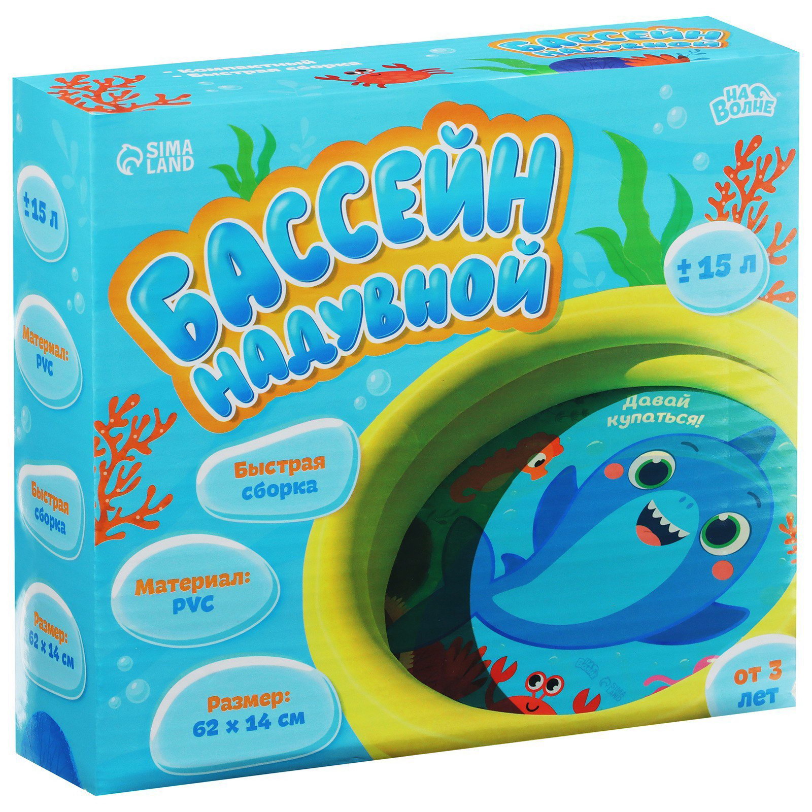 Бассейн надувной "На волне: Давай купаться!", 62x14 см, 62х62х1 см., На волне, Китай