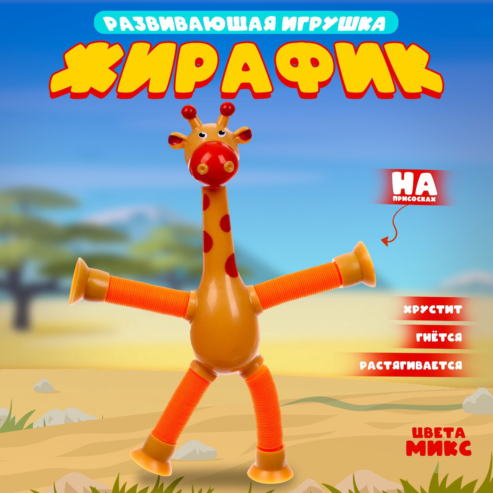 Размер упаковки: 12 x 18 x 3.5 см. Размер упаковки: 12 x 18 x 3.5 см. tnved: 9503010000 Вид: Pop Tubes Возраст: От 3 лет Цвет: МИКС Жирафик это развивающая игрушка, с которой малыш весело проведёт время и разовьёт важные навыки. Копыта жирафа можно вытягивать и сгибать в любом направлении благодаря пружинкам. Также игрушку можно прикреплять к любым поверхностям благодаря присоскам. Особенности