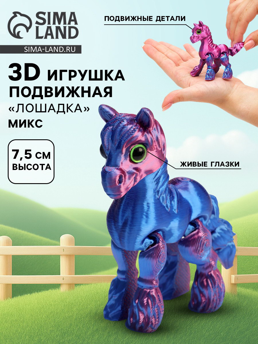 3Д - печатная игрушка "Лошадка", подвижная, цвет МИКС, 2x6x7.5 см., Китай