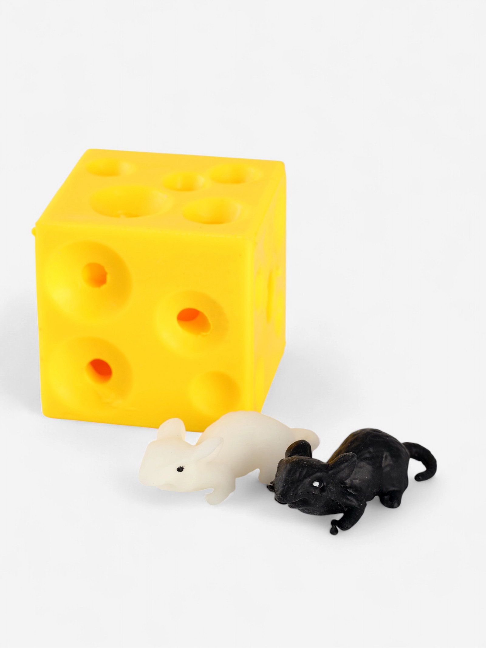 Антистресс игрушка "Сыр", мялка с мышками, 4.5x4.5x4.5 см., Китай